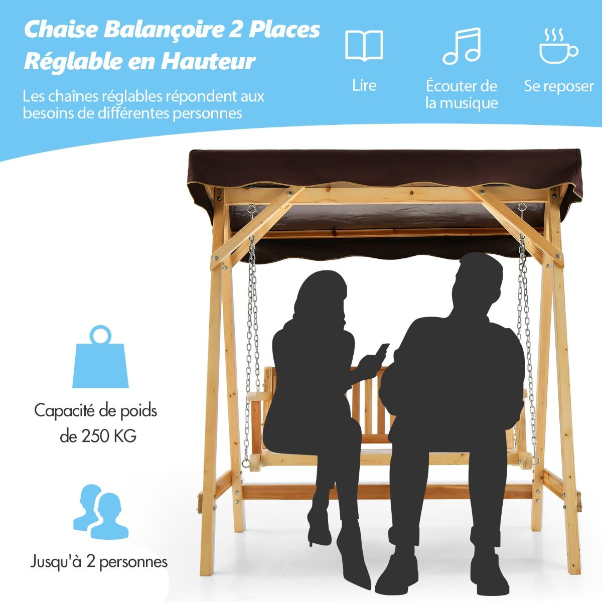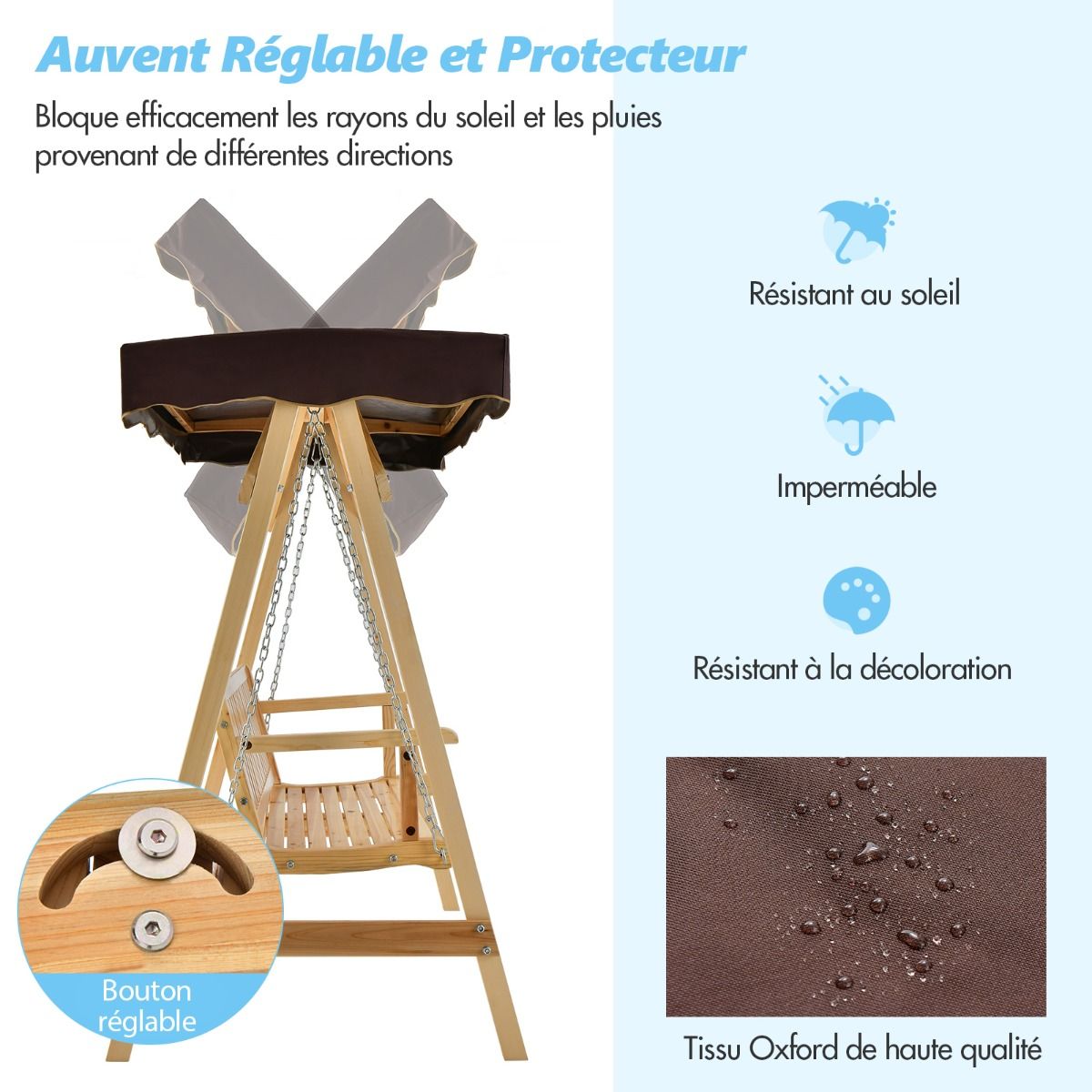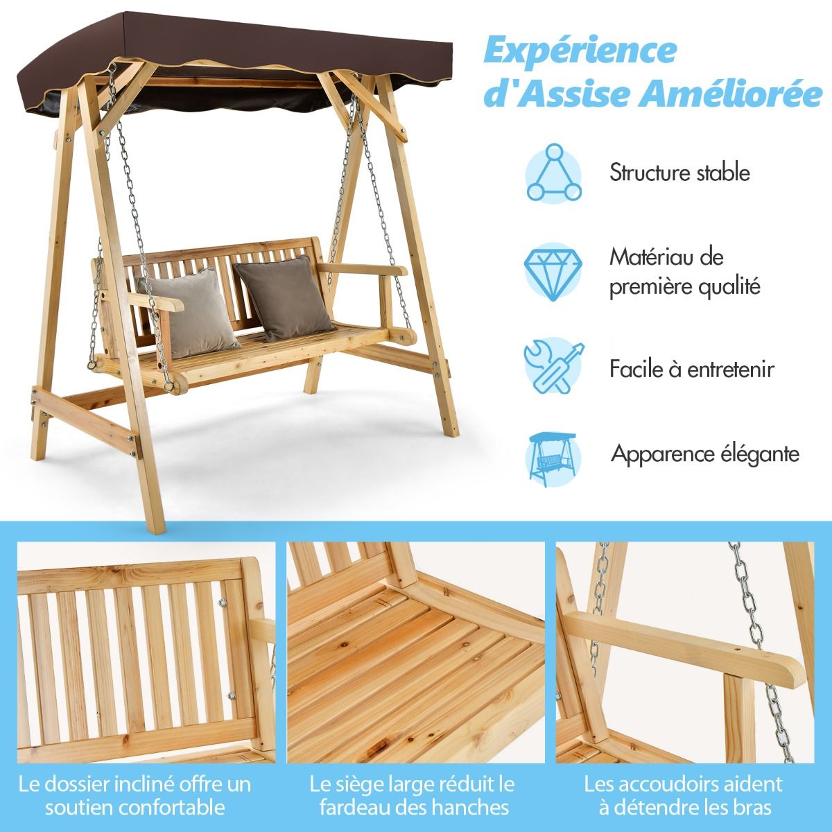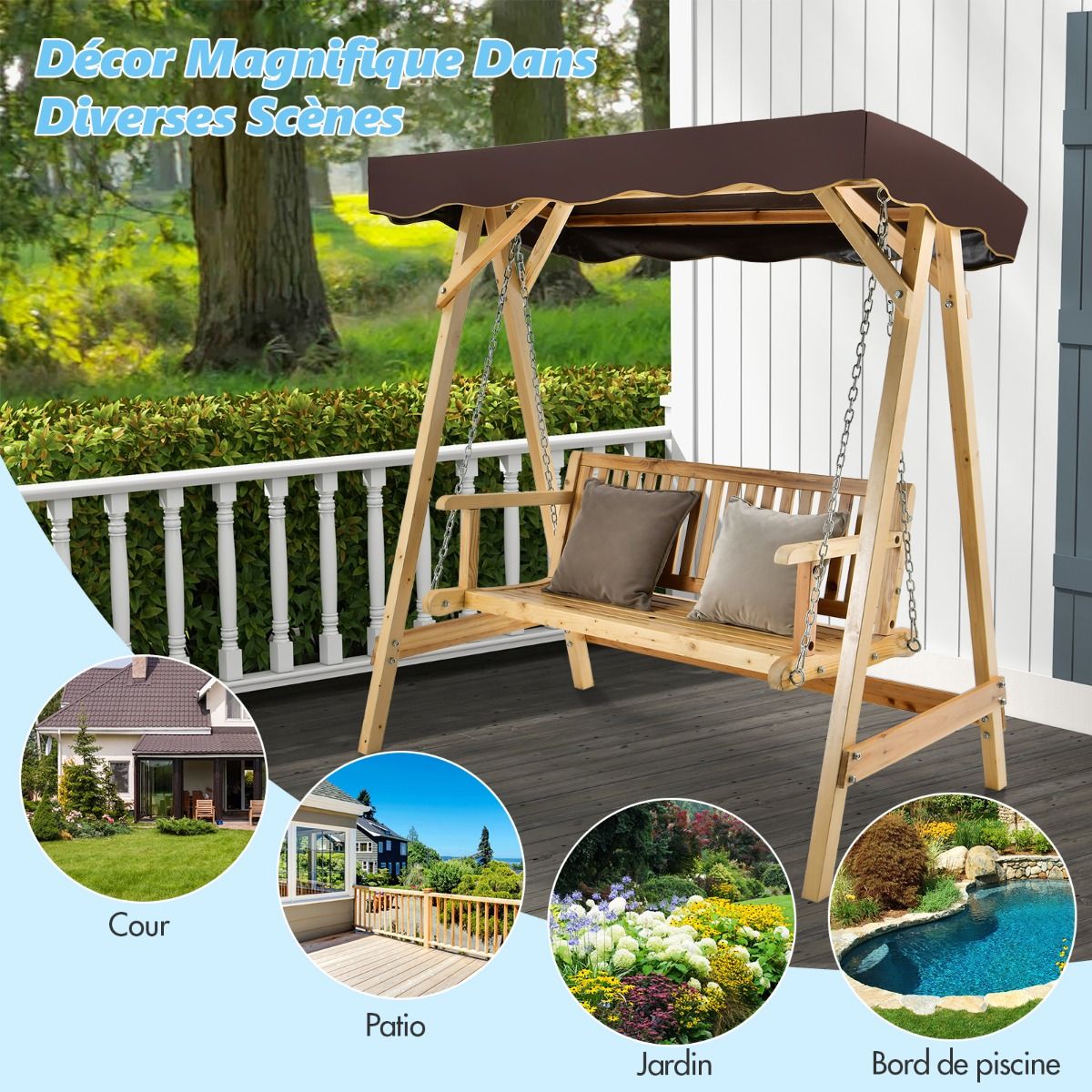 • 2-Seater Wooden Garden Swing with Waterproof Tilting Canopy, Adjustable Metal Chain, 240KG Load Capacity, A-Frame for Garden, Veranda, Courtyard -