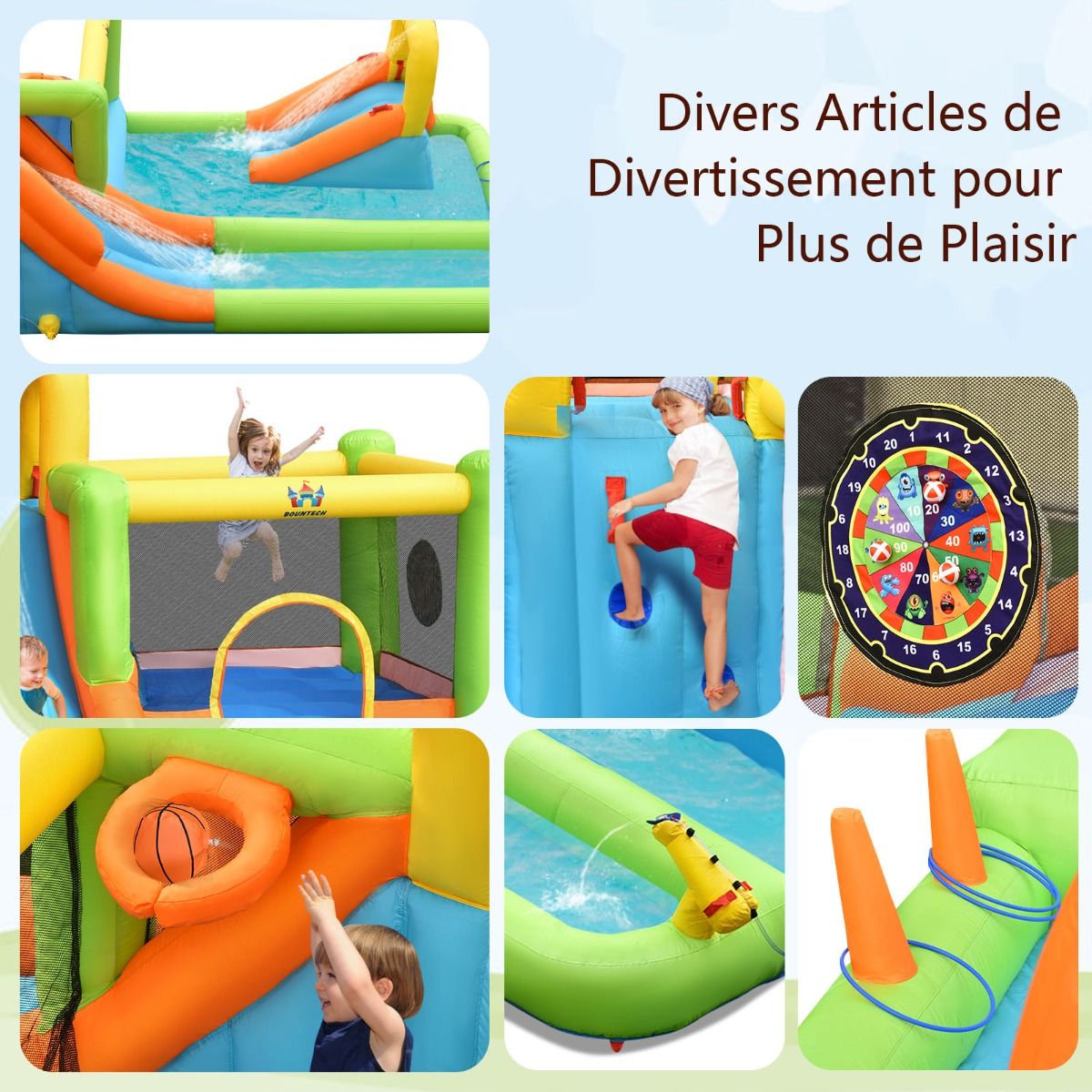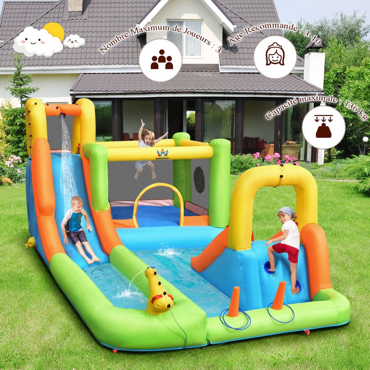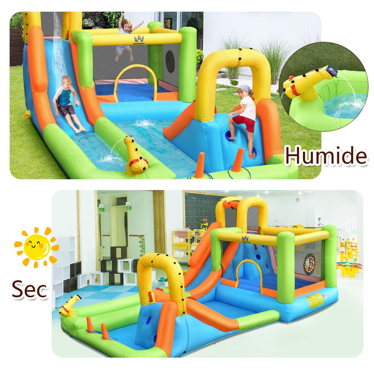 • 8-in-1 Inflatable Castle with 2 Slides, Water Park with Jump House, 135kg Load Capacity for 3 Children Aged 3-10 Years -