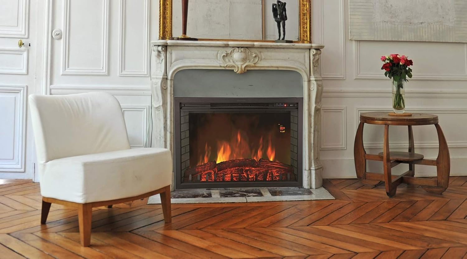 Chemin'Arte Electric Fireplace: This built-in electric fireplace is more aesthetically pleasing than traditional fireplaces, combining all the advantages of a fireplace while avoiding its disadvantages. Ultra-realistic LED Flame Effect: This fireplace uses Chemin'Arte LED technology for realistic flames, with adjustable height and intensity, adding a unique charm to your fireplace. Easy Adjustment: This fully built-in fireplace features daily and weekly timer functions, a thermostat with temperature control via an LCD screen, and a remote control for convenient operation. Energy-Saving Design: This built-in fireplace has a power range of 10W to 2000W, is made of black steel and tempered glass, and is designed for installation in existing fireplaces. It has overheat protection and can heat rooms up to 30 square meters. It consumes only 10 watts in flame mode. Quality and Design: As a pioneer in high-end designer electric fireplaces and heating equipment, Chemin'Arte is committed to enhancing your interior d��cor while providing superior performance. We specialize in distributing uniquely designed high-end electric fireplaces, radiators, and towel racks. Chemin'Arte products are more than just heating equipment; they are designed to enhance your interior d��cor and create a unique home style. Whether you're looking to add heating to a new home, renovate an older house, highlight the charm of a country villa, or create a modern atmosphere in an architect-designed residence, you'll find your perfect match in our extensive product range.