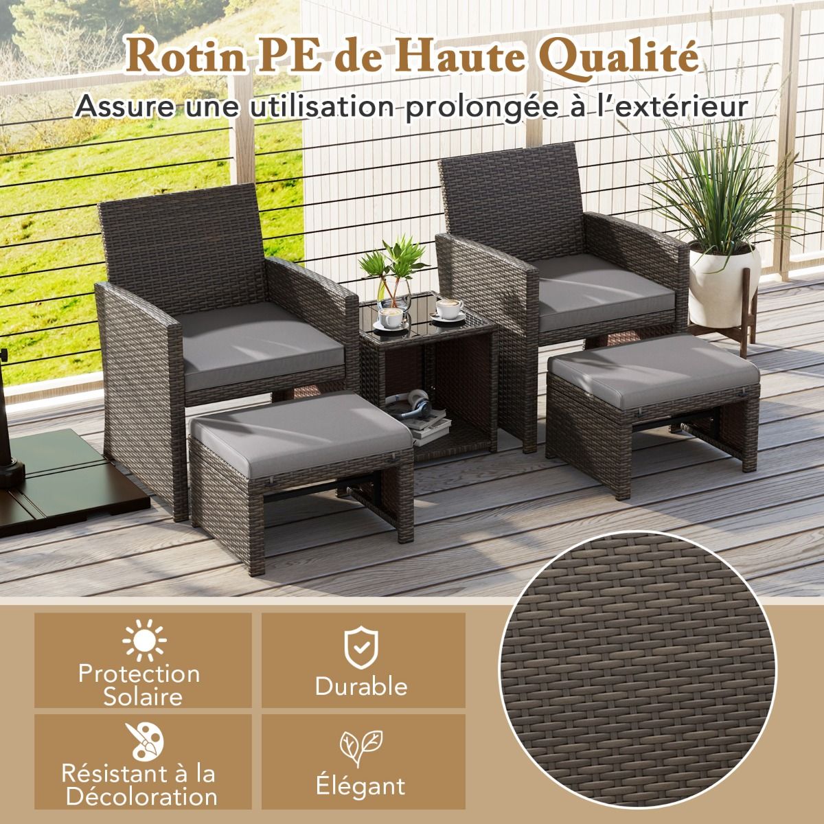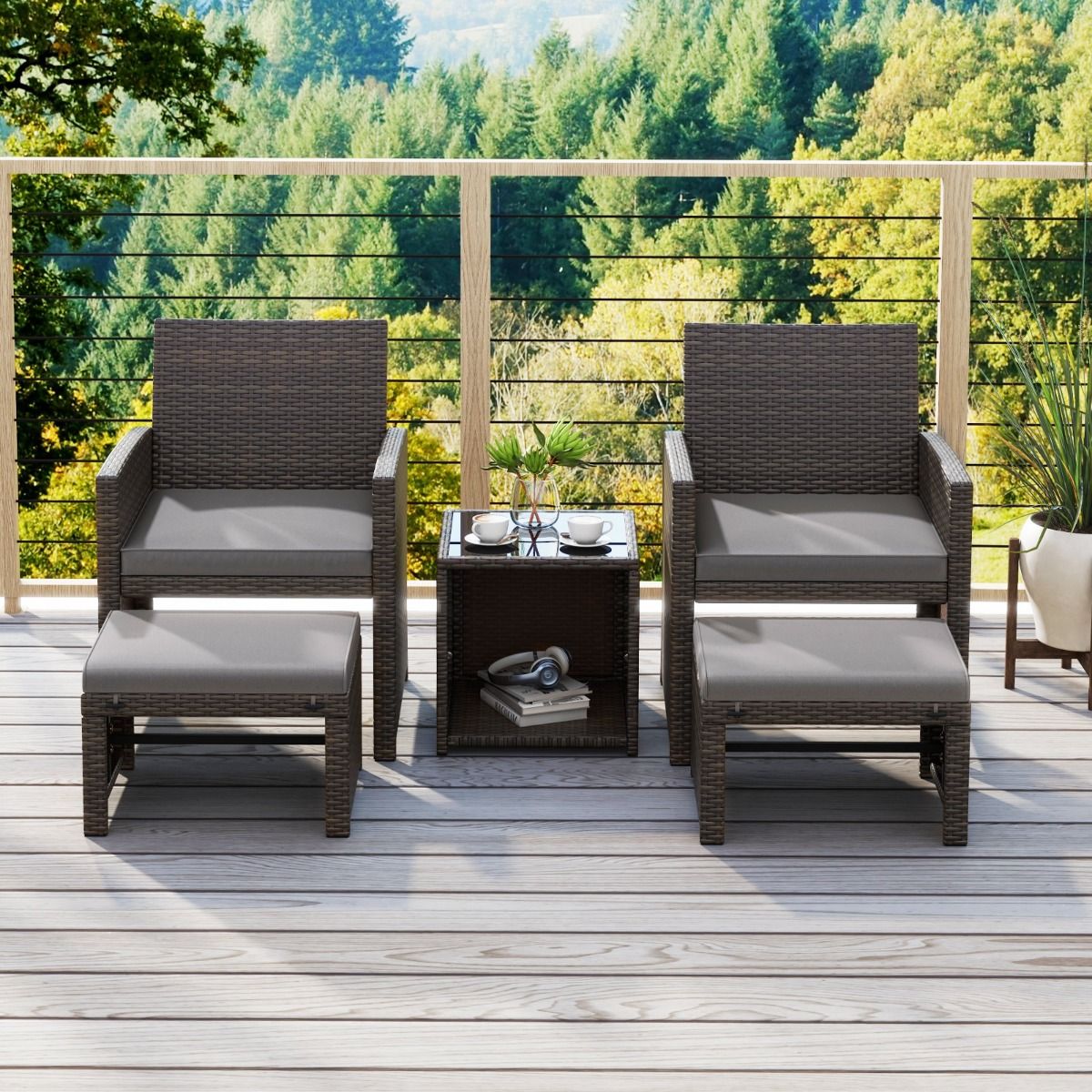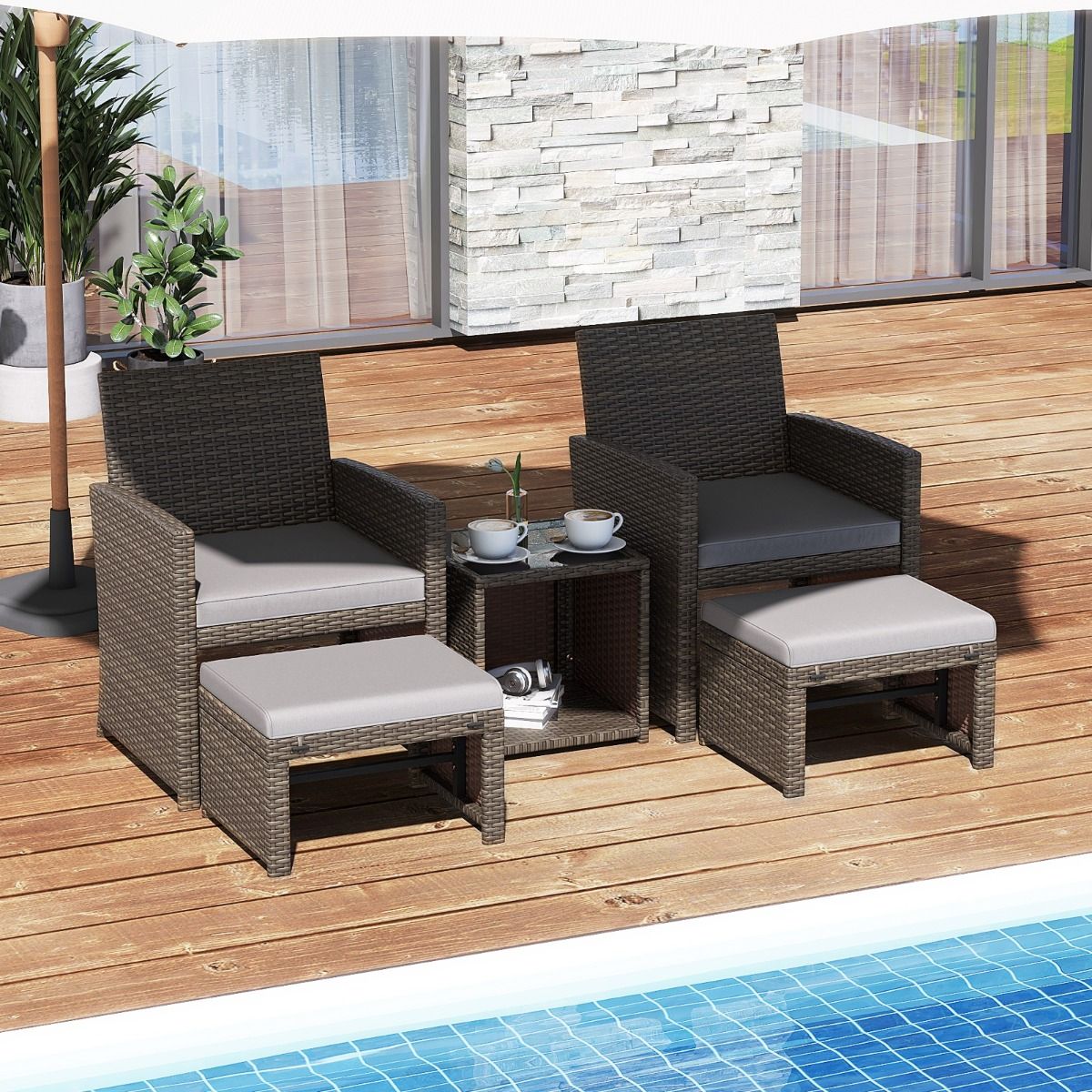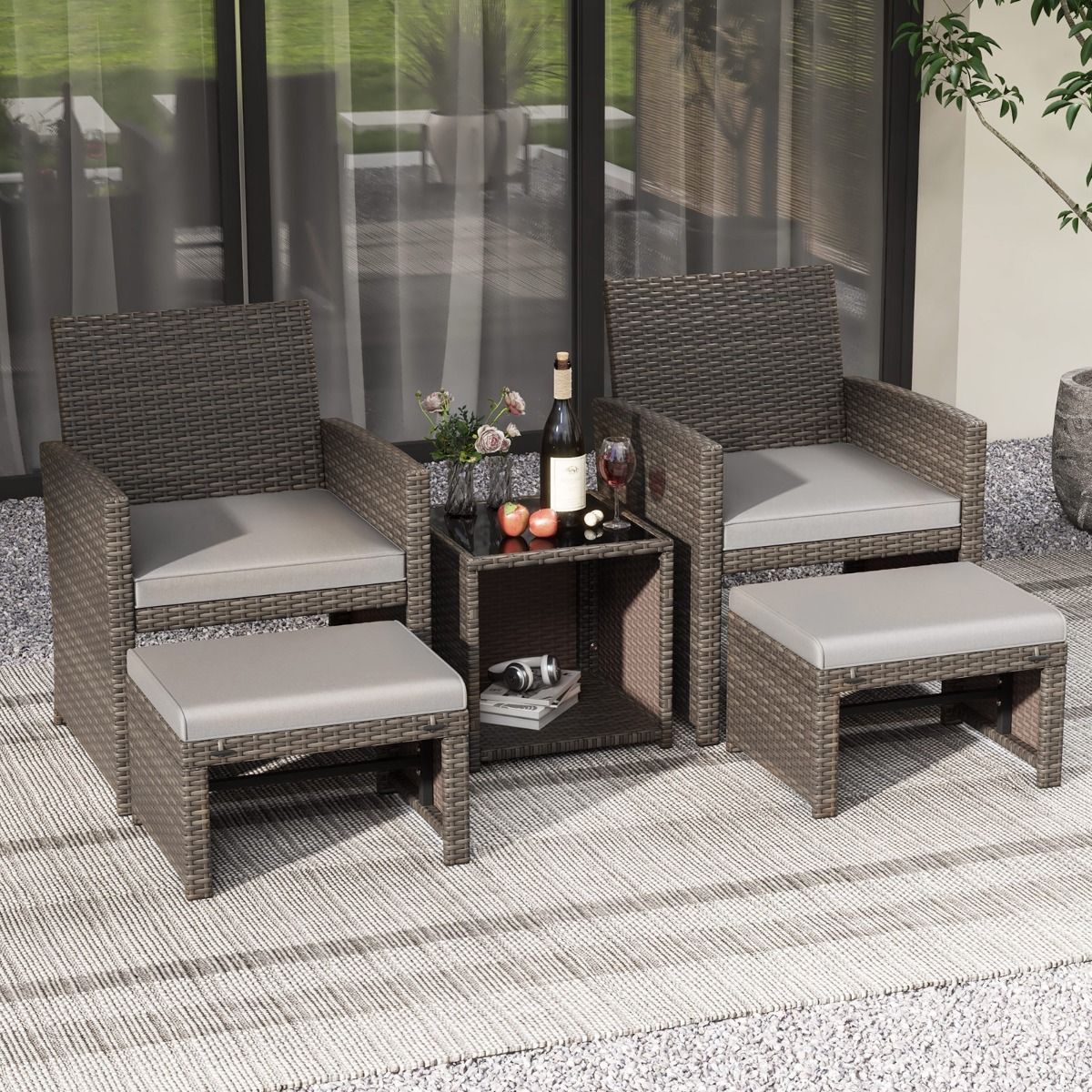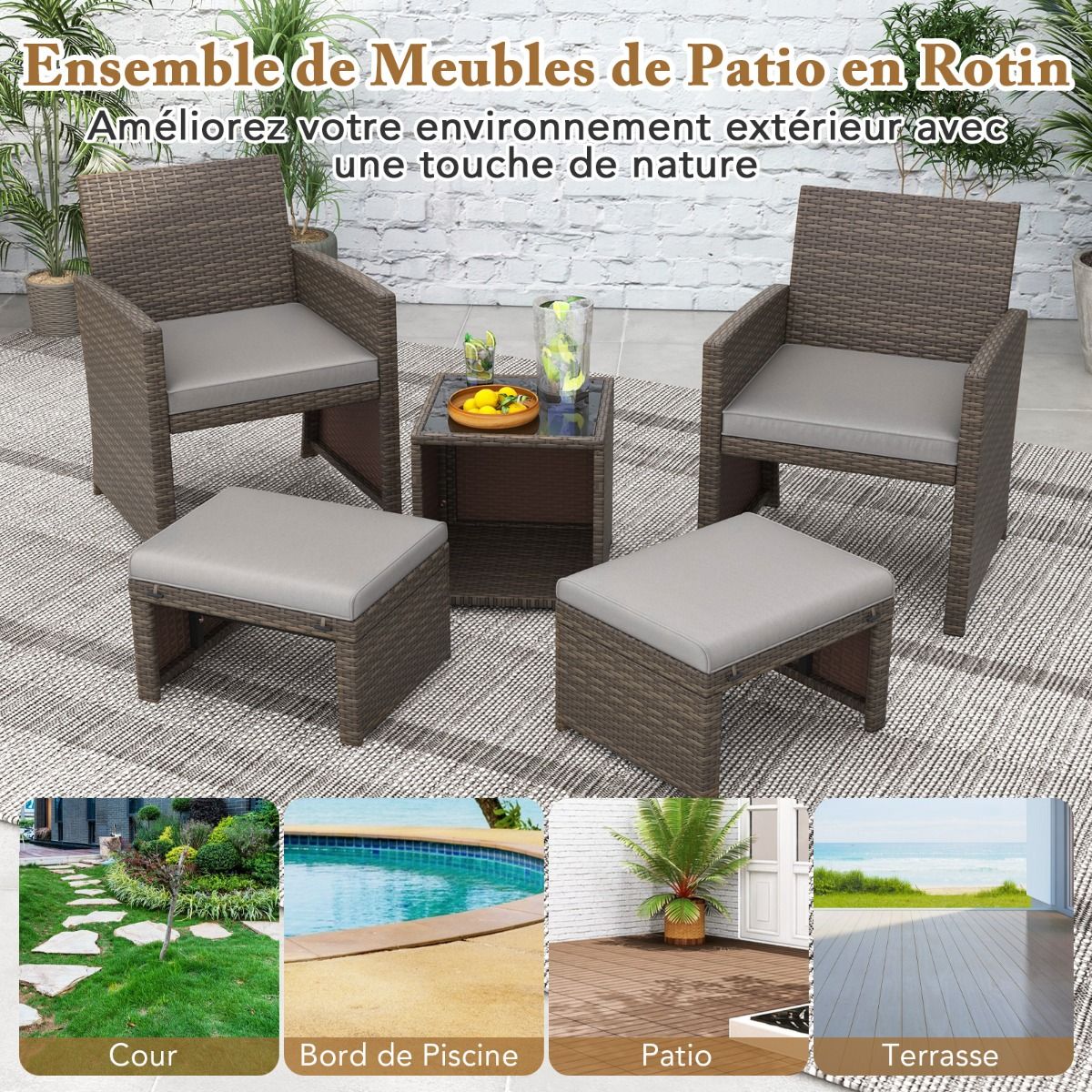 • 5-Piece Lounge Furniture Set, PE Rattan Garden Lounge Set with Cushions for Balcony, Pool, Terrace, Grey/White -
