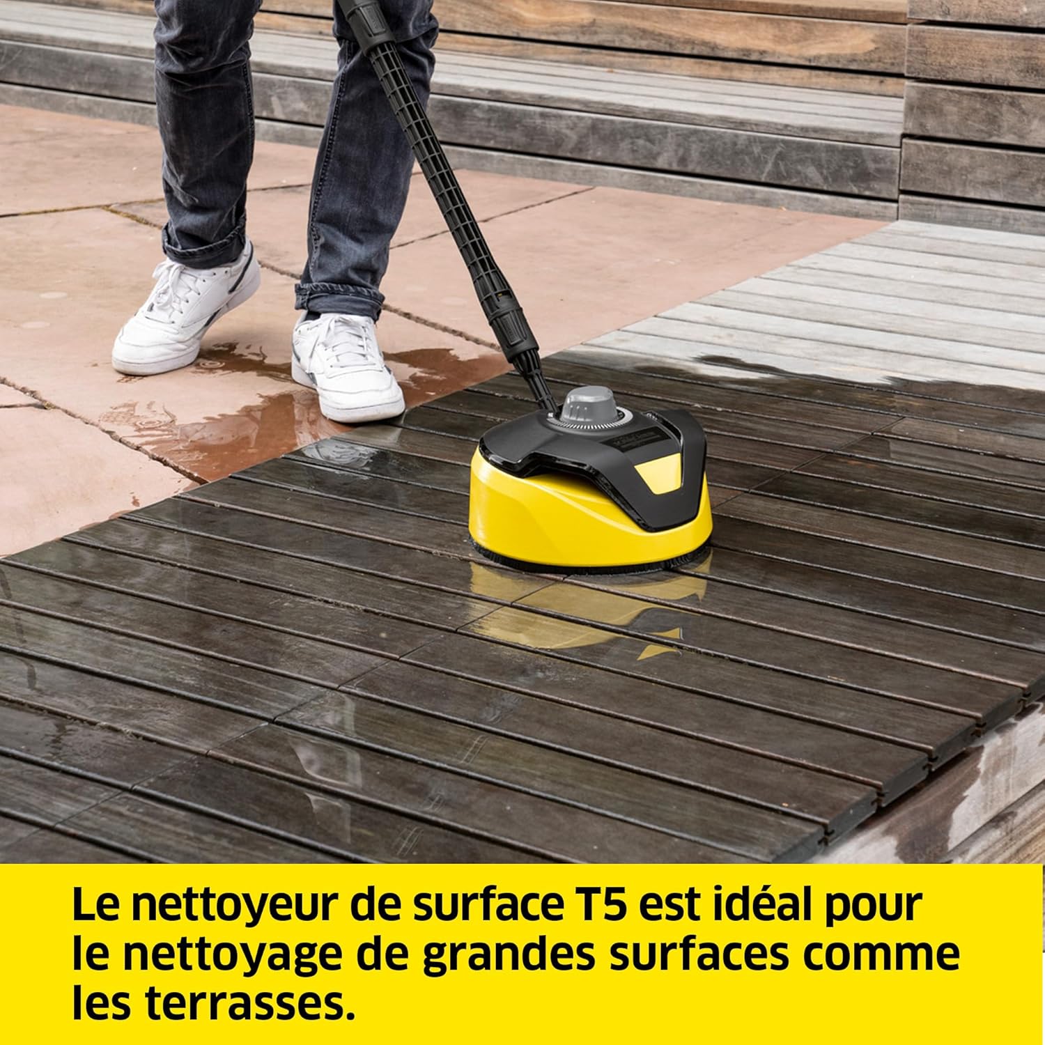Product Introduction: High-Performance Cleaner: The Karcher Power Control Flex Home Pressure Washer cleans bicycles, motorcycles, cars, tools, garden furniture, fences, and slate, with a maximum pressure of 130 bar. Complete Control: Pressure levels can be adjusted by rotating the spray gun. You can view settings at any time on the display screen of the G 160 Q Power Control spray gun. Accessories: The Karcher Home & Garden app guides you through various cleaning tasks, provides practical tips, and offers direct access to the Karcher Home Services portal. Complementary Components: The T 5 Surface Cleaner and Stone & Exterior Cleaner enable splash-free cleaning of large areas, such as garden paths or patios. Product Includes: Karcher K 4 Power Control Flex Home Pressure Washer, spray gun and 8-meter Flex high-pressure hose, spray gun, rotating nozzle, T 5 Surface Cleaner, Stone & Exterior Cleaner (1 liter). This powerful pressure washer works with an app: the Karcher K 4 Power Control Flex Home features a water-cooled motor, can clean up to 30 square meters per hour, and boasts a maximum pressure of 130 bar. The "Home & Garden" app helps you find the right settings for various cleaning situations. The K 4 Power Control Flex Home has three pressure settings and a detergent level indicator, all of which can be read on the pressure washer at any time. Thanks to its plug-and-play functionality, detergent application is also exceptionally convenient.