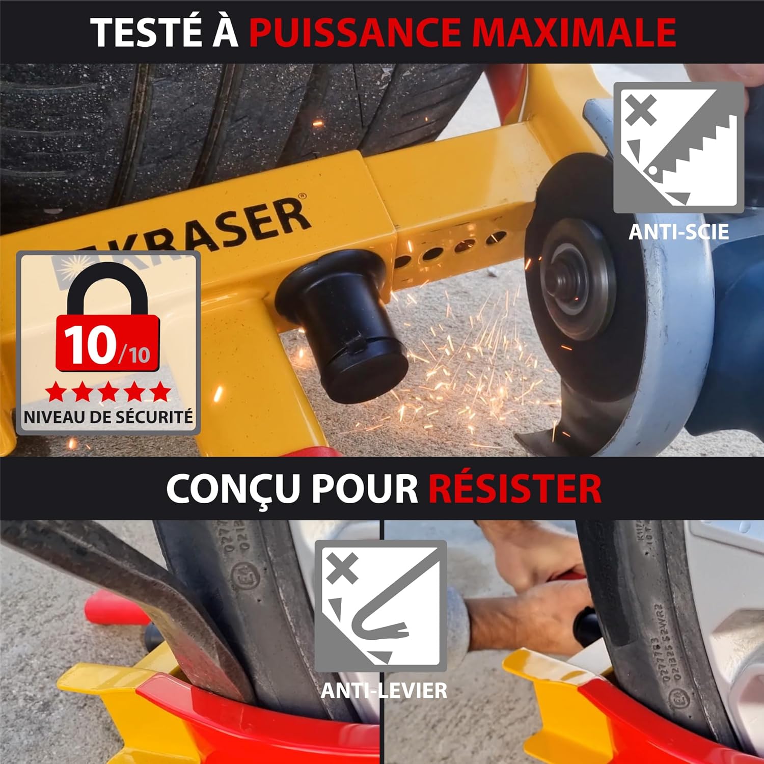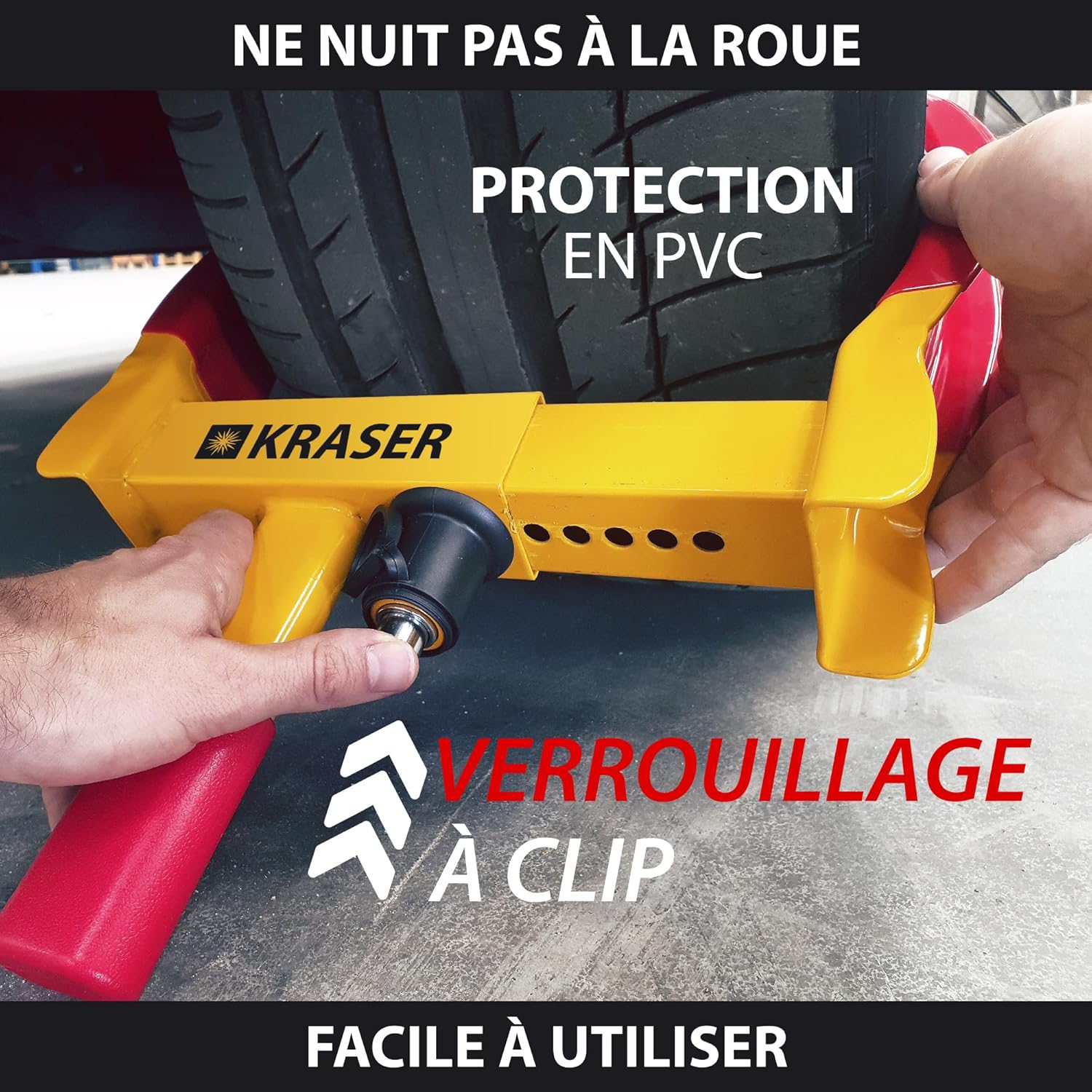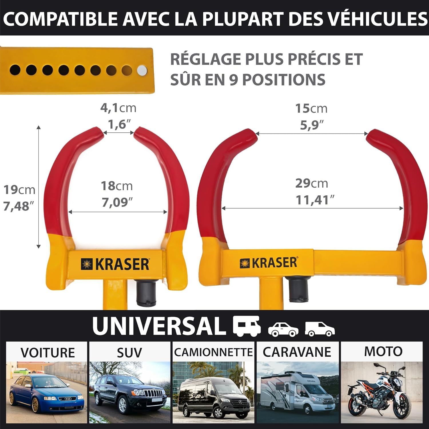 • KRASER WA820 Car Wheel Clamp, N1 Germany, High Security Anti-Drill Lock, Visible Deterrent Caravan Anti-Theft Device, Universal Adjustable Anti-Theft Blocking Device 18-29 cm for Cars, Motorhomes, and Trailers