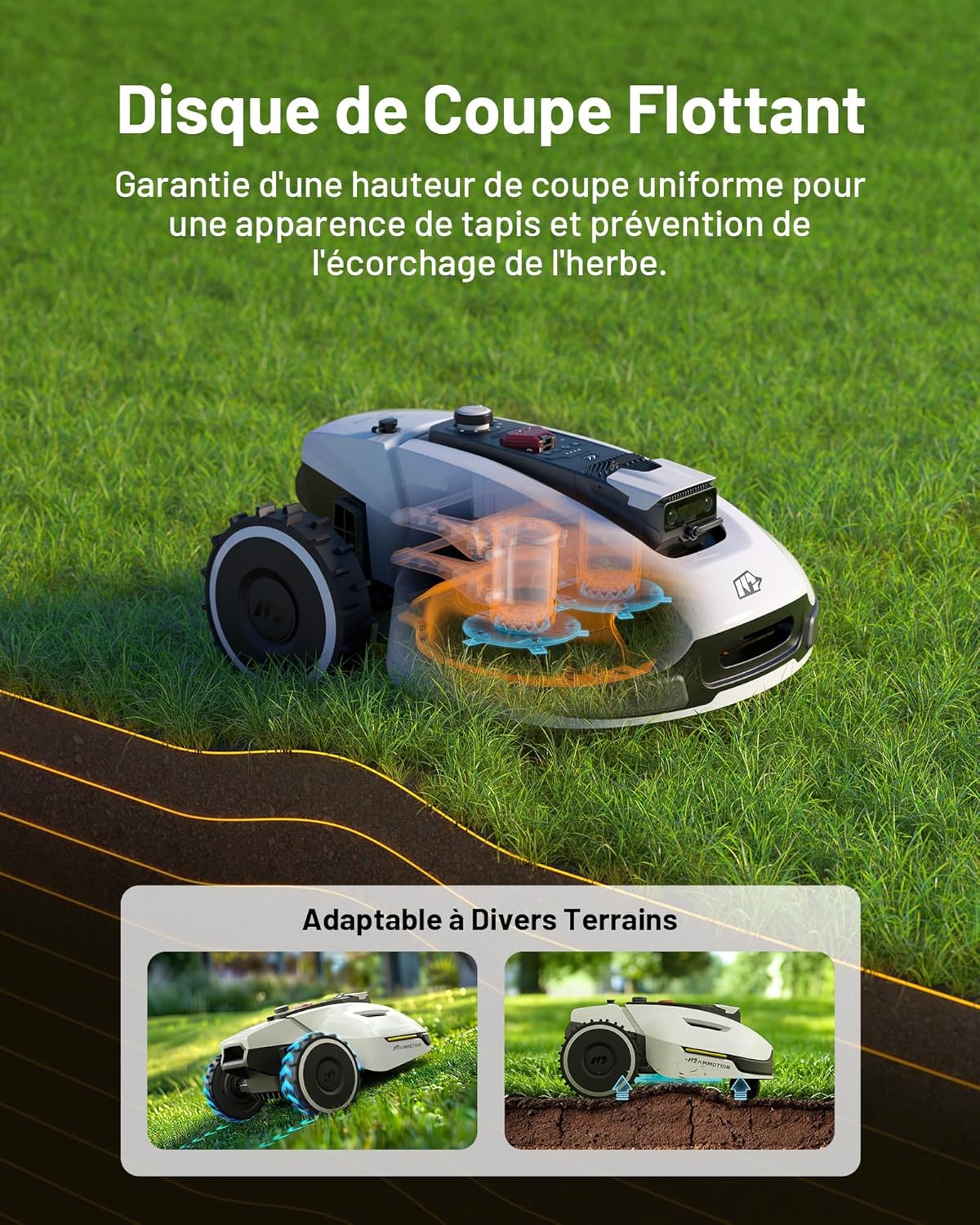 MAMMOTION YUKA 2000 Cordless Robotic Lawnmower, NetRTK+Vision, No RTK Antenna Required, Recommended for 2000 m2, Max. 2400 m2, Carpet-Like Lawn, Dual Cutting Disc, 4G Module