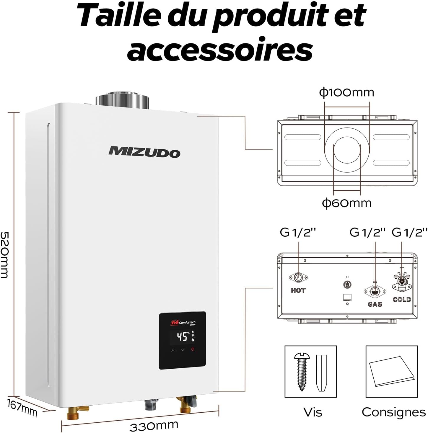 • MIZUDO 11L Instant Propane Gas Water Heater for Indoor Use, with LED Indicator for Domestic Use