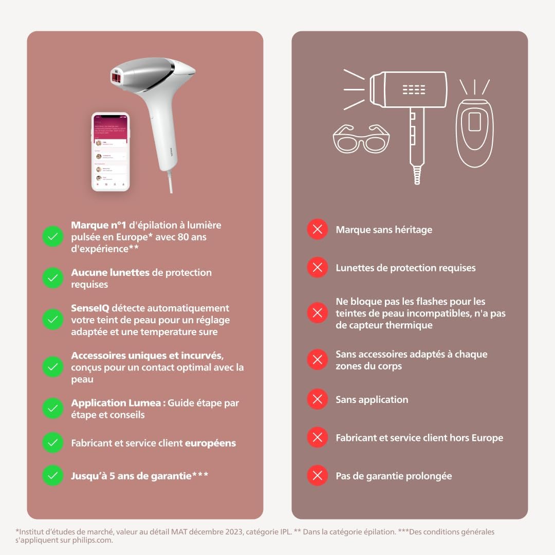• Philips Lumea Series 8000, Intense Pulsed Light (IPL) Hair Removal Device, Alternative to Hair Removal, SenseIQ Technology, 4 Accessories for Body, Face, Bikini Line, Underarms, Compact Pen-Style Trimmer, BRI949/00