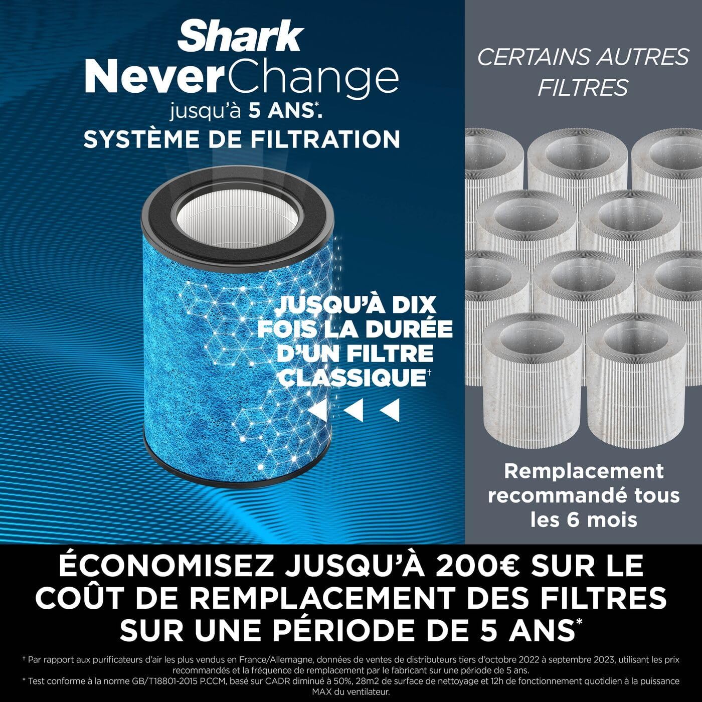 • Shark NeverChange up to 5-year MAX Indoor Air Purifier, Covers 130m2, 5-year HEPA filter, Captures 99.97% of allergens, Auto mode, Quiet, LED, White HP300EU