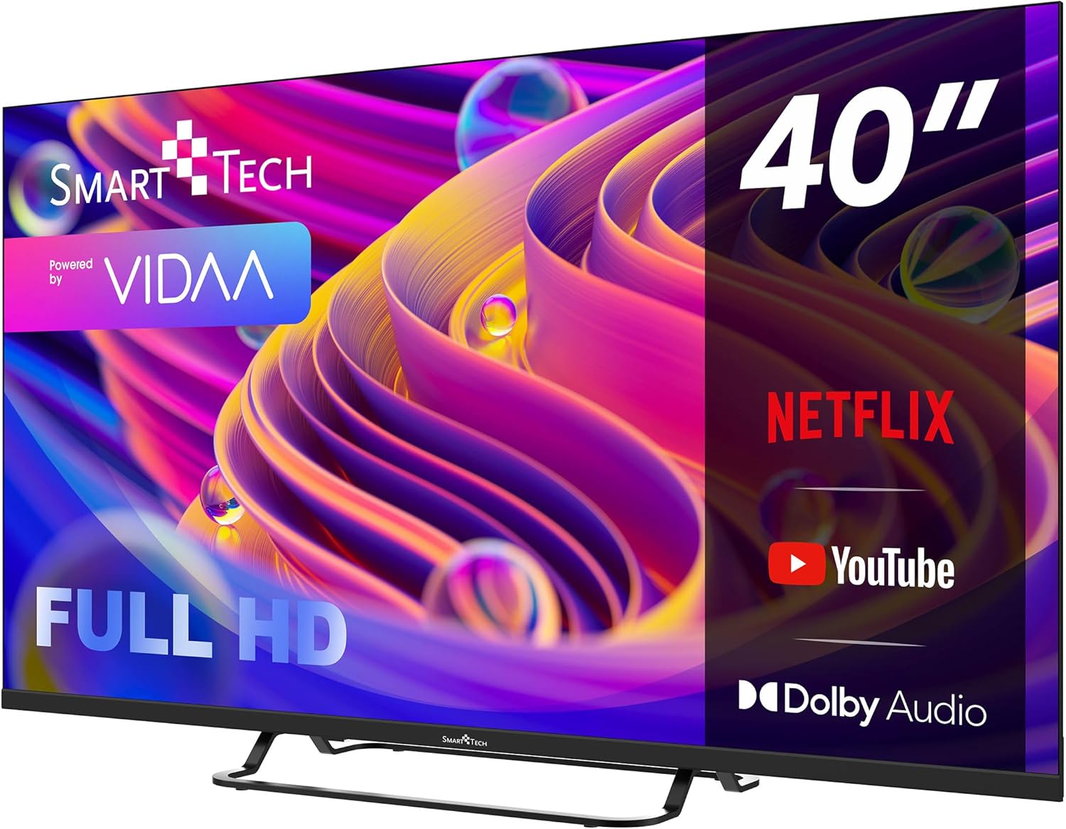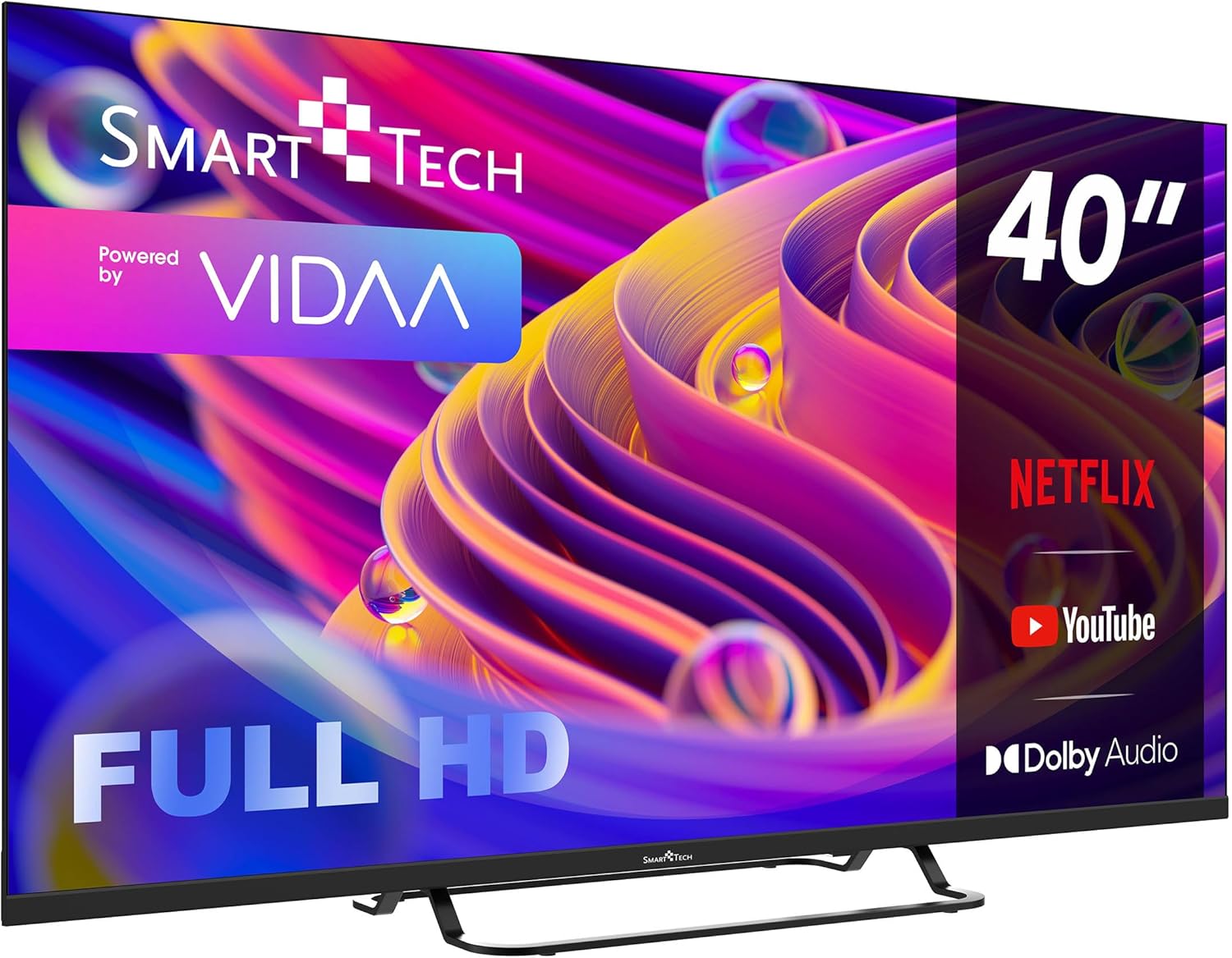 • Smart Tech TV LED FHD 40' (101 cm) 40FV02V Smart TV VIDAA - Molotov Netflix Prime Video + Youtube Plex 3xHDMI - 2xUSB - Hotel Mode-2026