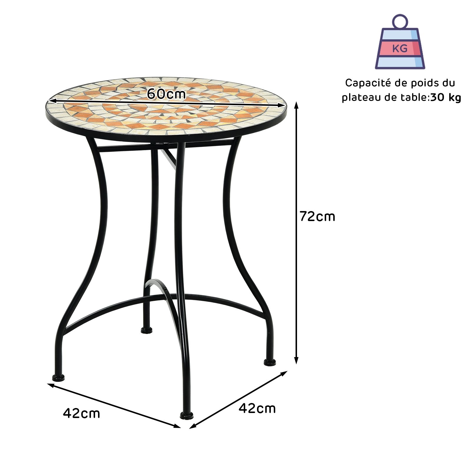 This charming vintage mosaic round table adds a touch of freshness to your home! It features an enamel mosaic tabletop adorned with an elegant and classic circular pattern. The iron frame and crossbeams ensure the table's stability, supporting up to 30 kg. It perfectly blends beauty and practicality. You can place this table on your balcony, in your living room, patio, or garden to enjoy a wonderful afternoon with family and friends. Product Features: Exquisite Mosaic Design This wrought iron round table features a vintage mosaic style. Each enamel mosaic tile incorporates an elegant and classic circular pattern, presenting a rich texture and beautiful colors. You'll love it when you place it in your favorite space. Sturdy Iron Frame This mosaic round table is made of solid iron, ensuring durability. The crossbeam structure at the bottom enhances the table's stability, ensuring it can support up to 30 kg. This table is suitable for everyday use, easily supporting your items without deformation. For durability, our round mosaic round table uses a high-quality technical coating, giving it anti-aging and anti-corrosion properties. The meticulously crafted mosaic tabletop is sturdy, resistant to breakage and peeling, and durable. Perfectly sized and versatile: Measuring 60cm x 72cm (width x height), the table is a suitable size for both large gatherings and everyday use. It can be used as a coffee table, flowerpot display table, or snack table. Whether on a balcony, in the living room, on a patio, or in the garden, it blends seamlessly into your space. Easy assembly and maintenance: All parts are easy to assemble without complicated operations. The smooth, waterproof surface is also easy to clean; a simple wipe is all it takes. Product features: Easy assembly in minutes; sturdy iron frame that won't deform or tip over; rust-resistant coating makes it suitable for outdoor use; can support up to 30kg, meeting daily needs; the beautiful mosaic design adds a touch of brightness to your home; perfectly sized for placement on a balcony, in the living room, or in the garden. This table is versatile: it can be used as a coffee table, flowerpot table, dining table, and more. Color: Black; Material: Iron; Dimensions: 60 x 60 x 72 cm (Length x Width x Height); Net Weight: 14 kg; Maximum Load Capacity: 30 kg