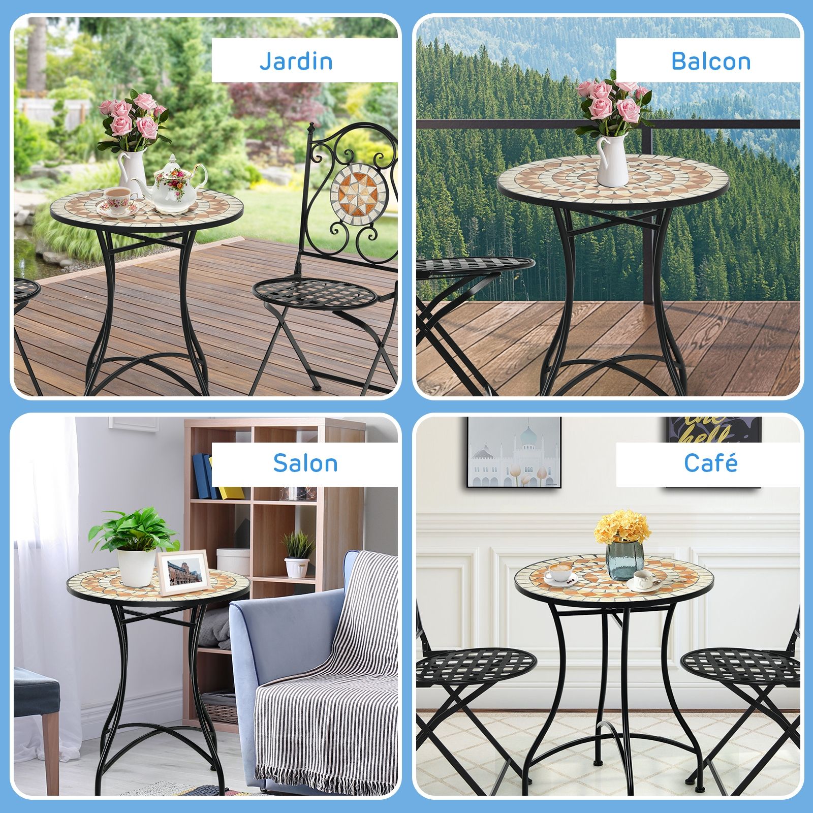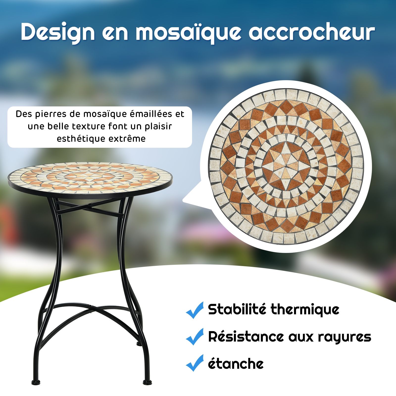 Mosaic Style Garden Table with Iron Frame and Rustproof Coating, 60 x 60 x 72 CM