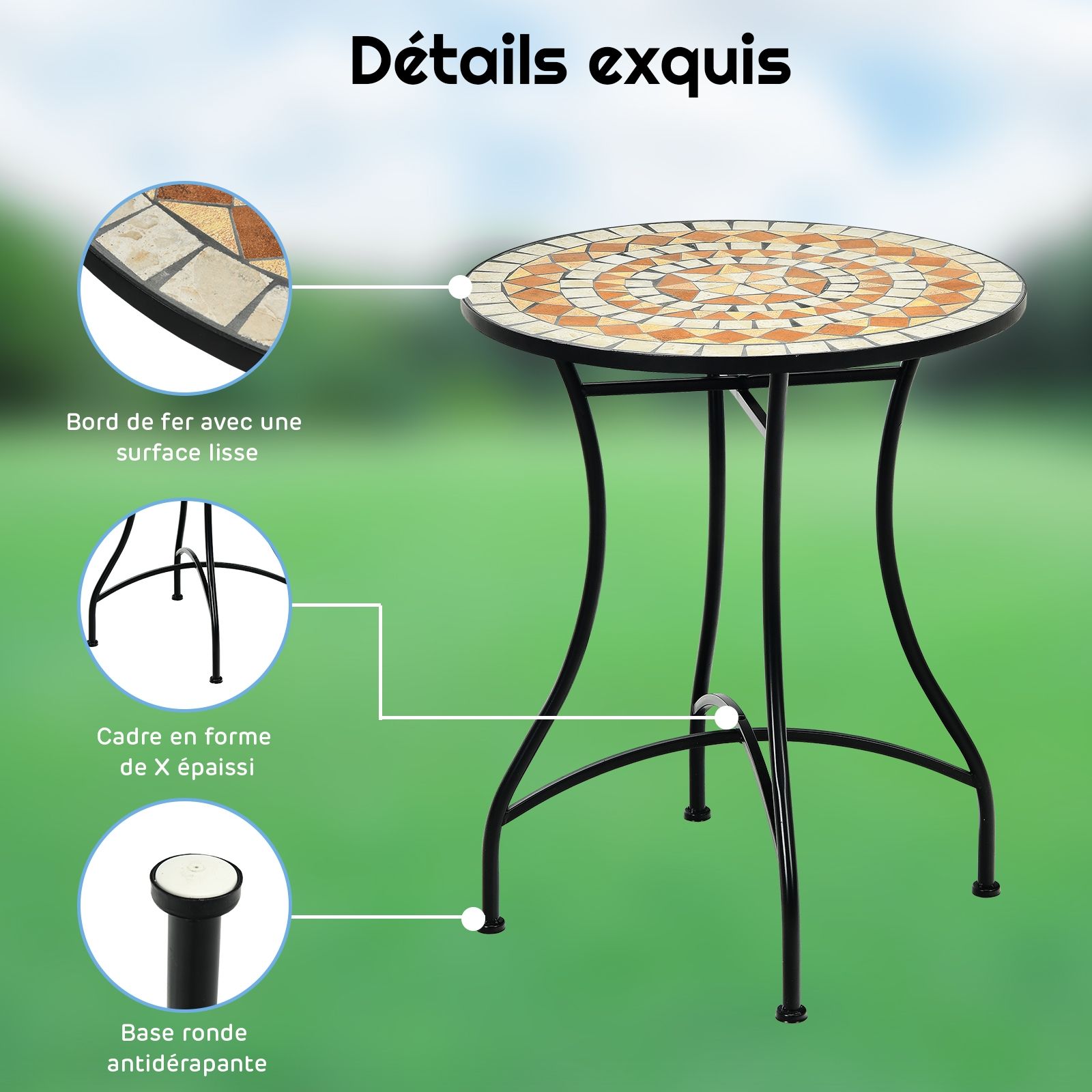 • Mosaic Style Garden Table with Iron Frame and Rustproof Coating, 60 x 60 x 72 CM