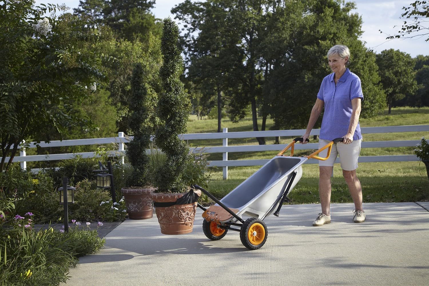 About this item 8 functions in 1: wheelbarrow, hand truck, cart, bag carrier, plant stand, towrist, and more Capacity up to 136 kg with an optimized center of gravity for effortless transport Solid, puncture-proof, all-terrain tires that require no maintenance or inflation Ergonomic handles with soft-grip coating for a comfortable grip Extendable arms and multiple attachments for heavy or irregular objects High-strength steel frame for exceptional durability and stability Transforms your outdoor work with a versatile, patented design Compatible with multiple accessories to suit all your needs (sold separately) Ideal for moving pots, stones, bags of soil, tools, or garden trailers 3-year warranty (2 + 1 free) subject to registration within 30 days at eu.worx.com Worx Aerocart WG050. More than just a wheelbarrow. The perfect 8-in-1 solution for home and garden: Wheelbarrow, hand truck, extended hand truck, bag carrier, cylinder carrier, rock carrier, plant stand, and trailer puller. Extremely versatile for transport and hauling, the Aerocart transforms in a snap from a wheelbarrow to a hand truck. With the Worx Aerocart, you save money and space. Your wheelbarrow will never sit idle again, taking up valuable floor space. The patented design distributes the load evenly across the wheels, ensuring balanced and comfortable transport. The wheel arrangement also guarantees that you only need 1 4 of the lifting force required with traditional wheelbarrows. Features: Patented design distributes the load evenly across the wheels for balanced and comfortable transport. Two all-terrain solid rubber tires no inflation required and stable support. Extendable handles and various accessories make it easy to transport all kinds of items. Ergonomic handles with a soft grip provide added comfort. Constructed from high-quality steel for increased durability. Specifications: Max. Load Capacity: 136 kg (load capacity varies depending on the application). Max. Capacity: approx. 0.11 m3 110 L. Weight: 19 kg. Accessories Included Accessories: 1 bag holder, 1 cylinder holder, 1 rock holder, 1 pot holder. Expand your Aerocart with optional accessories for the Planting Cart with Seat, Snow Plow and Mulcher, or Water Carrier. Matching extension kits are sold separately. Worx Aerocart WG050. 8-in-1 Multifunctional Wheelbarrow. Max. Load Capacity: 136 kg. Max. Volume: 110 liters. Wheelbarrow. Hand Truck. Extended Hand Truck. Cylinder Carrier. Rock Support. Plant Support. Trailer Puller. Bag Holder. Extendable with accessories.