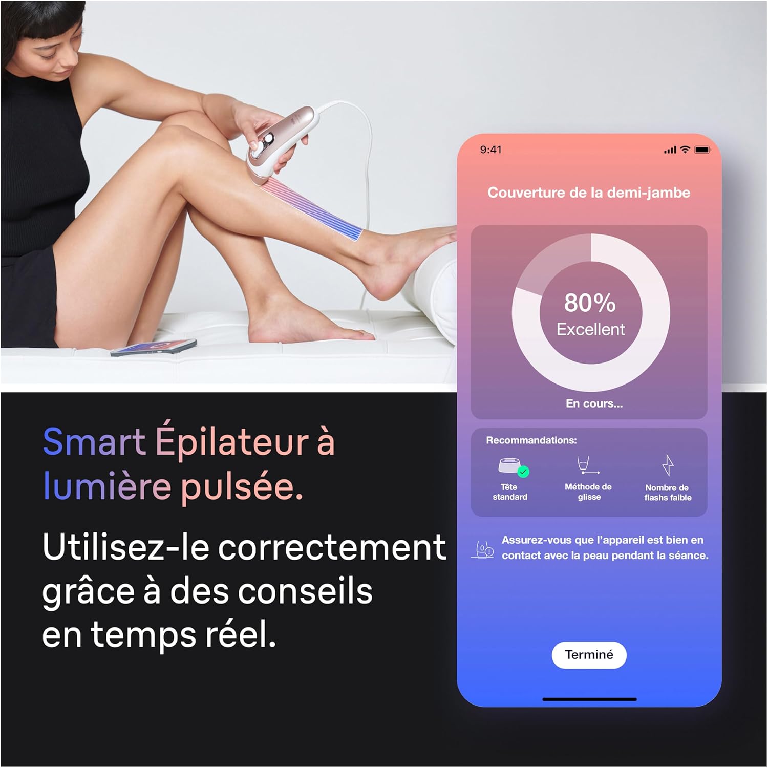 Braun's fastest solution for smooth skin up to two years: visible results after the first use (results may vary depending on individual results). World's first intelligent IPL system: learns with each use and automatically adjusts the treatment to suit your needs. Fastest and most effective IPL: a full-body treatment in just 10 minutes, comfortable and painless, suitable for legs, underarms, arms, chest, back, face, and even the bikini line, equipped with a dedicated treatment head. Easier and more precise for optimal results: the only IPL device that tracks progress in real time and intelligently identifies the treatment head, like having your own personal esthetician. Safe and reliable, dermatologist-approved: equipped with a skin protection system and UV filter to ensure safety and optimal results. Its technology shared with Cyden adjusts each flash according to your skin type, safe and harmless, no glasses required. Your personalized treatment schedule: a smart calendar schedules treatments and automatically adapts to your lifestyle, making it easy to use even when you're busy. Portable: comes with a dedicated premium carrying case for easy portability, even when traveling. The device and accessories are all included. Designed in Germany, made in the UK. Product Description: With this world's first intelligent IPL hair removal device, you no longer need to go to a beauty salon. It learns and adapts to your needs. Whether it's bikini line, face, or pubic hair removal, the Braun Skin i��expert IPL hair removal device is ideal for quickly achieving smooth, long-lasting skin. Just like laser hair removal in a beauty salon, the Skin i��expert adjusts the treatment according to your needs, provides real-time guidance, and tracks your progress via a free mobile app, all done in the private comfort of your home. Safe and effective, it uses Intense Pulsed Light (IPL) technology shared with Cyden, automatically adapting to your skin tone. Package Contents: 1 Braun IPL hair removal device (including standard head), 1 Venus shaver, 1 cosmetic case, 2 precision heads, 1 wide head.