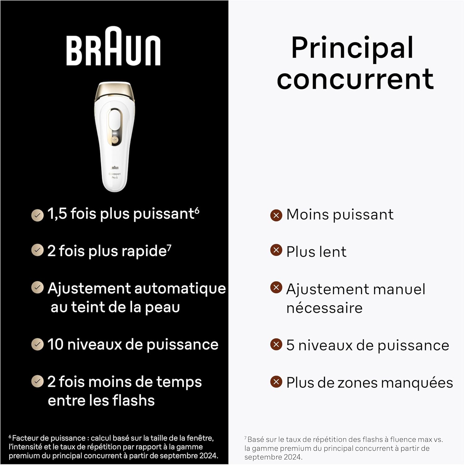Years of smooth skin: Visible results in just two treatments (results may vary depending on the treatment plan). Braun's fastest hair removal device: Easily remove full-body hair at home in just 10 minutes, no need to go to a beauty salon. Safe and reliable, dermatologist-approved: Thanks to the SkinProtect sensor, the IPL hair removal device automatically and continuously adjusts the intensity of each flash according to your skin's changes. This sensor is approved by the Skin Health Alliance dermatologists. Gentle on the skin: Comfortable and painless, safe to use even on sensitive areas, thanks to its 3 intensity modes and built-in UV filter. Full-body hair removal: Equipped with a dedicated hair removal head for legs, underarms, arms, chest, back, face, and even the bikini line. Designed in Germany, made in the UK. Includes 1 carrying bag, 1 standard hair removal head, and 1 precision hair removal head. Product Description: The Braun Silk��expert Pro 5 is an Intense Pulsed Light (IPL) hair removal device, an alternative to laser hair removal. Its advanced pulsed light technology can provide up to two years of smooth skin, with noticeable results seen in just two treatments (treatment regimen must be followed. Results may vary). Thanks to its SkinProtect technology, the device automatically and continuously adjusts each flash according to your skin tone changes. Approved by dermatologists from the Skin Health Alliance. Up to 125 flashes per minute, reducing missed areas. How to use: 1. Use SkinProtection MAX technology to automatically adapt to your skin tone. 2. Select one of two sensitivity modes. 3. Apply the IPL device to the desired area. Safety Warnings: This device is for single-person use only. Not for use by persons under the age of 18. Individuals with impaired physical, sensory, or mental abilities may use this device if they have received supervision or guidance regarding the safe use of this device and understand the associated risks. Children should be supervised to ensure they do not play with this device. Keep this device out of reach of children. Electrical and Fire Safety: Regularly inspect the device and wiring for any visible signs of damage. If any damage or cracks are found, discontinue use immediately. Use of a damaged device may result in electric shock. If any malfunction is found, please take the device to an authorized service center for inspection and repair if necessary. Repairs performed by non-professionals may pose a great danger to the user. Always unplug the power cord after use. Never attempt to repair or open the device yourself, as this may expose you to dangerous electrical components and pulsed light energy, resulting in serious bodily injury and/or permanent eye damage. Do not use this product in water or on damp surfaces such as bathtubs, showers, sinks, or other containers that may hold water. Never use this product in a damp environment. Using a damp device may result in electric shock. Do not use the device if it is damaged (cracked casing, damaged wiring, etc.). The internal components are dangerous electrical components. Please check the processing window (1) regularly for damage. Do not use the device if the glass filter (9) is broken or missing. Do not use the device if the built-in reflector is missing or incorrectly positioned. Do not touch the glass filter during or after use, as it will be very hot. Do not use flammable cleaning agents (alcohol, acetone) or petroleum derivatives on the device, as they may pose a fire hazard.