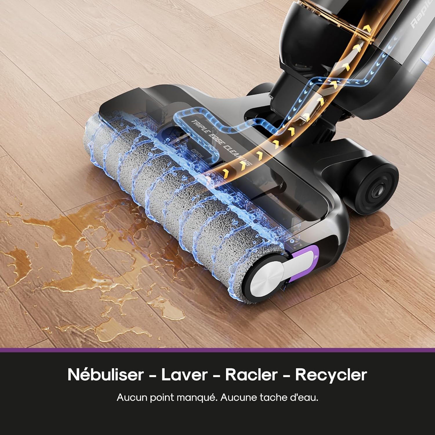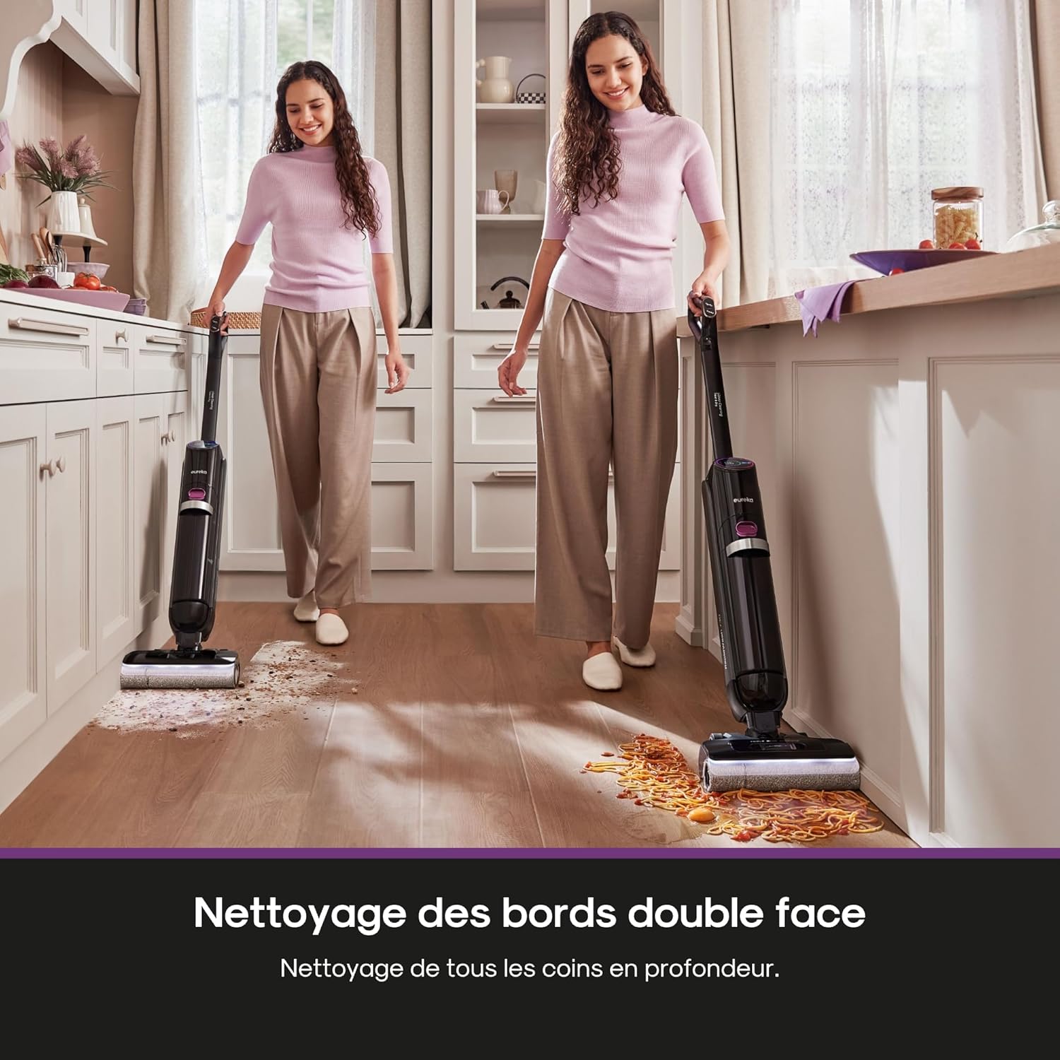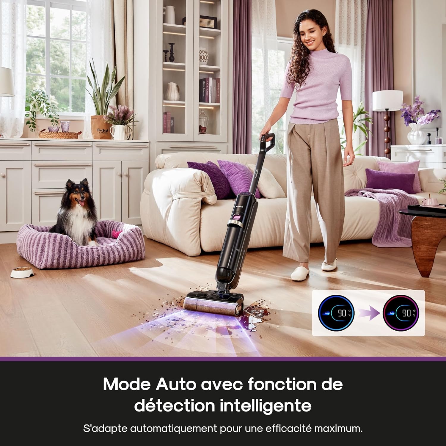 85SpendC Hot Water Wash and 80SpendC Hot Air Dry: The RapidWash 730 vacuum cleaner uses 85SpendC hot water for a thorough wash, effectively dissolving stubborn stains (grease, grime) and deeply cleaning mop fibers. In just 5 minutes, 80SpendC hot air completely dries the roller, removing residual moisture, preventing mold growth and odors, and ensuring your tool stays hygienic. Powerful 21,600 Pa Suction: This cordless vacuum cleaner boasts a powerful 21,600 Pa suction, effectively removing pet hair, stubborn dust, and liquids, suitable for all types of floors (tile, hardwood, marble). Its advanced technology prevents water stains, leaving your floors sparkling clean after every use. Large Water Tank and 40-Minute Long Runtime: The RapidWash 730 comes with a 700ml clean water tank (50% larger than the previous generation) and a 600ml dirty water tank (15% larger than the previous generation), allowing you to clean your entire house without interruption. Its high-capacity battery (4000mAh*6) provides up to 40 minutes of continuous runtime, ideal for cleaning large areas. 0mm dual-blade roller brush and Anti-Tangle 2.0: The roller brush features a 0mm edge design, perfectly conforming to walls and baseboards, easily cleaning even the narrowest corners. The Anti-Tangle 2.0 system, equipped with comb teeth and blades, cuts hair and fibers before they accumulate, reducing clogging by 80% and making cleaning easier. Intelligent dirt detection and interactive LED display: The LED display shows the level of dirt, battery status, and selected mode in real time. In automatic mode, the handheld vacuum cleaner automatically adjusts suction and water flow for optimal cleaning, efficiently removing stains while saving energy. Innovative design for ultimate comfort: Simply press the pedal to activate the automatic cleaning function; no need to bend over or search for buttons. The flat, tilting design makes cleaning under low furniture such as beds and sofas easy. Weighing only 5.2 kg and equipped with a self-propelled system, it moves easily with a gentle push it gets the cleaning done! The EUREKA RapidWash NEW730 cordless vacuum and mop combo features 21,600 Pa suction, 85SpendC hot water wash, 5-minute hot air drying, an anti-tangle 2.0 system, a flat design, and 40 minutes of continuous runtime. 85SpendC Hot Water Wash and 80SpendC Hot Air Dry: The RapidWash 730 uses 85SpendC hot water to dissolve stubborn stains (grease, grime) and deeply clean the mop fibers. In just 5 minutes, 80SpendC hot air thoroughly dries the roller, removing all residual moisture, preventing mold growth and odors, and ensuring your tool remains hygienic. Powerful 21,600 Pa Suction: This cordless vacuum boasts a powerful 21,600 Pa suction, effectively removing pet hair, stubborn dust, and liquids, suitable for all types of floors (tile, hardwood, marble). Its advanced technology prevents water stains, leaving your floors sparkling clean after each use. Large-capacity water tank and up to 40 minutes of runtime: The RapidWash 730 features a 700ml clean water tank (50% larger than the previous generation) and a 600ml dirty water tank (15% larger than the previous generation), allowing you to clean your entire house without interruption. Its high-capacity battery (4000mAh*6) provides up to 40 minutes of continuous runtime, ideal for large-area cleaning. Dual-blade roller brush with 0mm edge and Anti-Tangle 2.0 system: The roller brush features a 0mm edge design that perfectly conforms to walls and baseboards, easily cleaning even the narrowest corners. The Anti-Tangle 2.0 system, equipped with comb teeth and blades, cuts hair and fibers before they accumulate, reducing clogging by 80% and making cleaning easier.