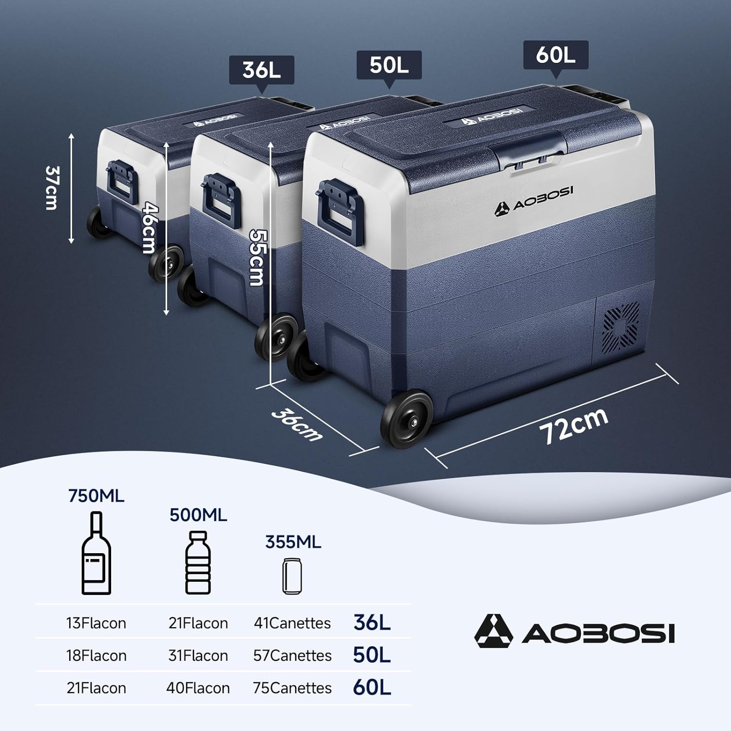 • AAOBOSI 36L Compressor Cooler, Dual Zone Electric Cooler with WiFi App, 12V/24V and 100-240V Camping Fridge, -20Spend to 20Spend, for Car, Truck, Boat, Camping, Caravan, Travel, Home