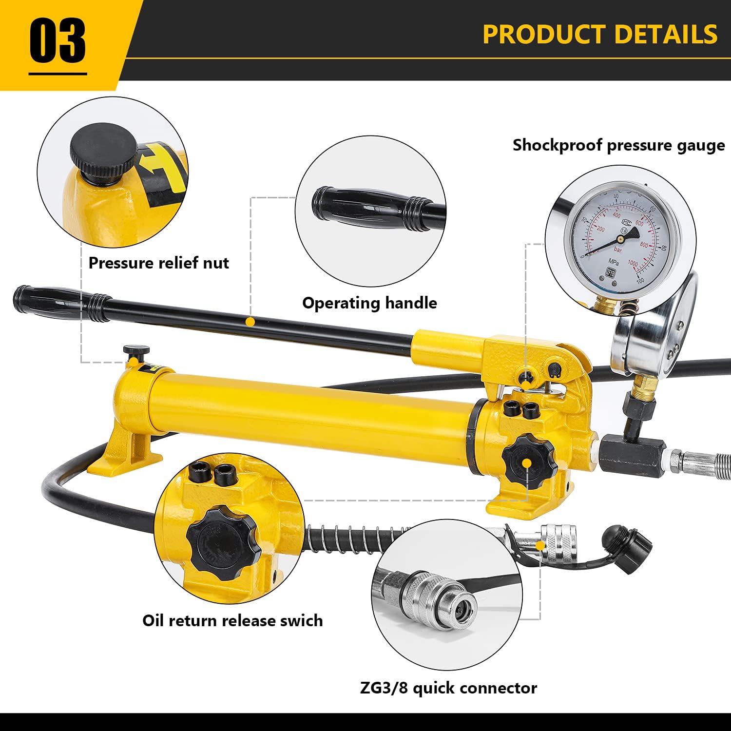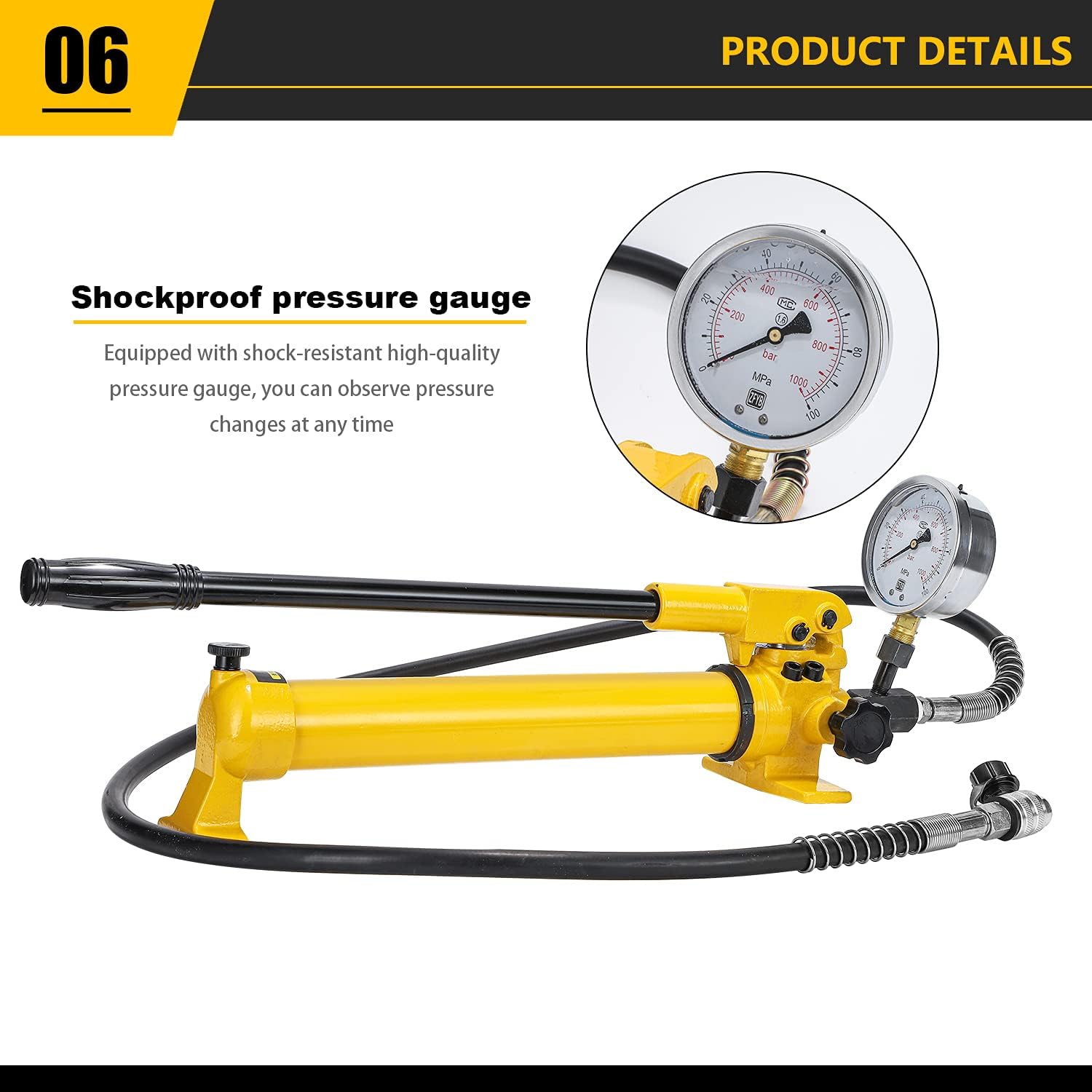 • CGOLDENWALL CP-700 Manual Hydraulic Pump with 1.8m Hose, High Pressure 700kg/cm2, 900cc Oil Capacity for Use with a Variety of Hydraulic Tools