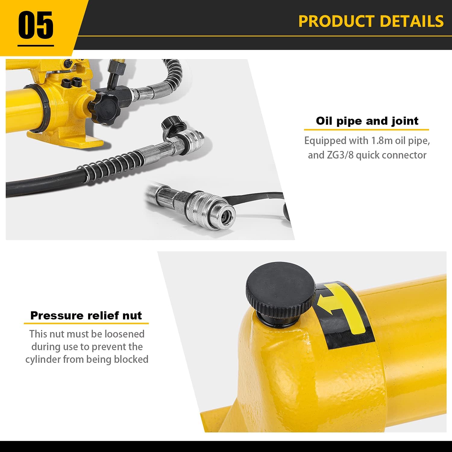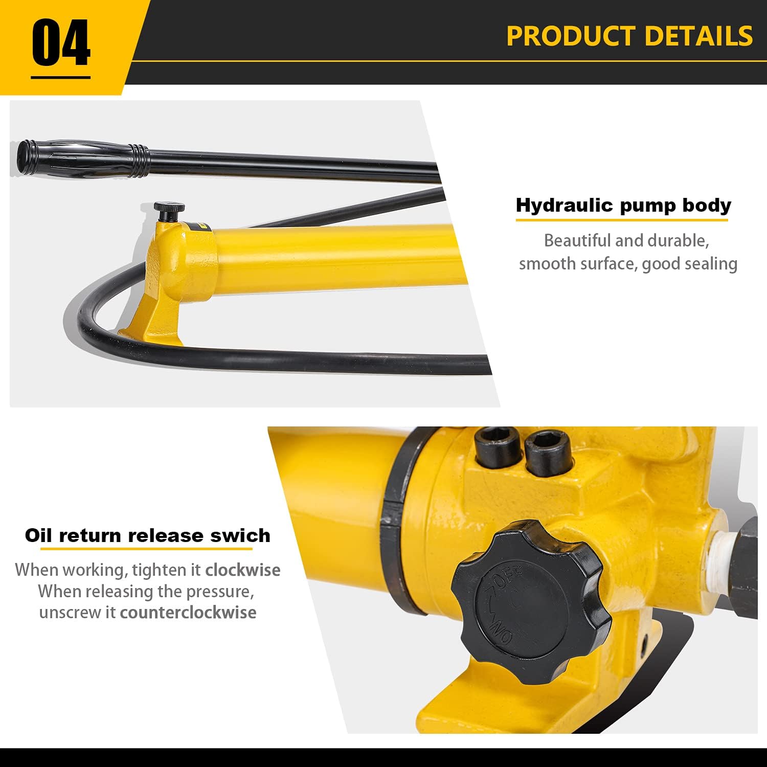 Hydraulic Pump Body - Smooth surface, excellent sealing, and no oil leakage. Pressure Relief Valve - A pressure relief valve is located on the pump head; it must be tightened clockwise during operation and loosened counterclockwise to release pressure. Oil Pipe and Quick Coupling - The CP-700 hydraulic pump is equipped with a 1.8-meter-long oil reservoir pipe and a ZG 3 8 threaded quick coupling. Vent Nut - An indicator is located at the end of the pump body; this nut must be loosened during use to prevent the oil tank from sealing. Wide Applications - This hydraulic pump can be used in hydraulic punch presses, hydraulic cutting machines, hydraulic jacks, hydraulic clamps, etc.