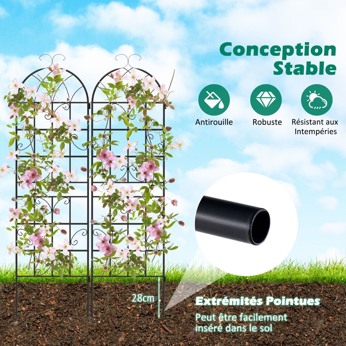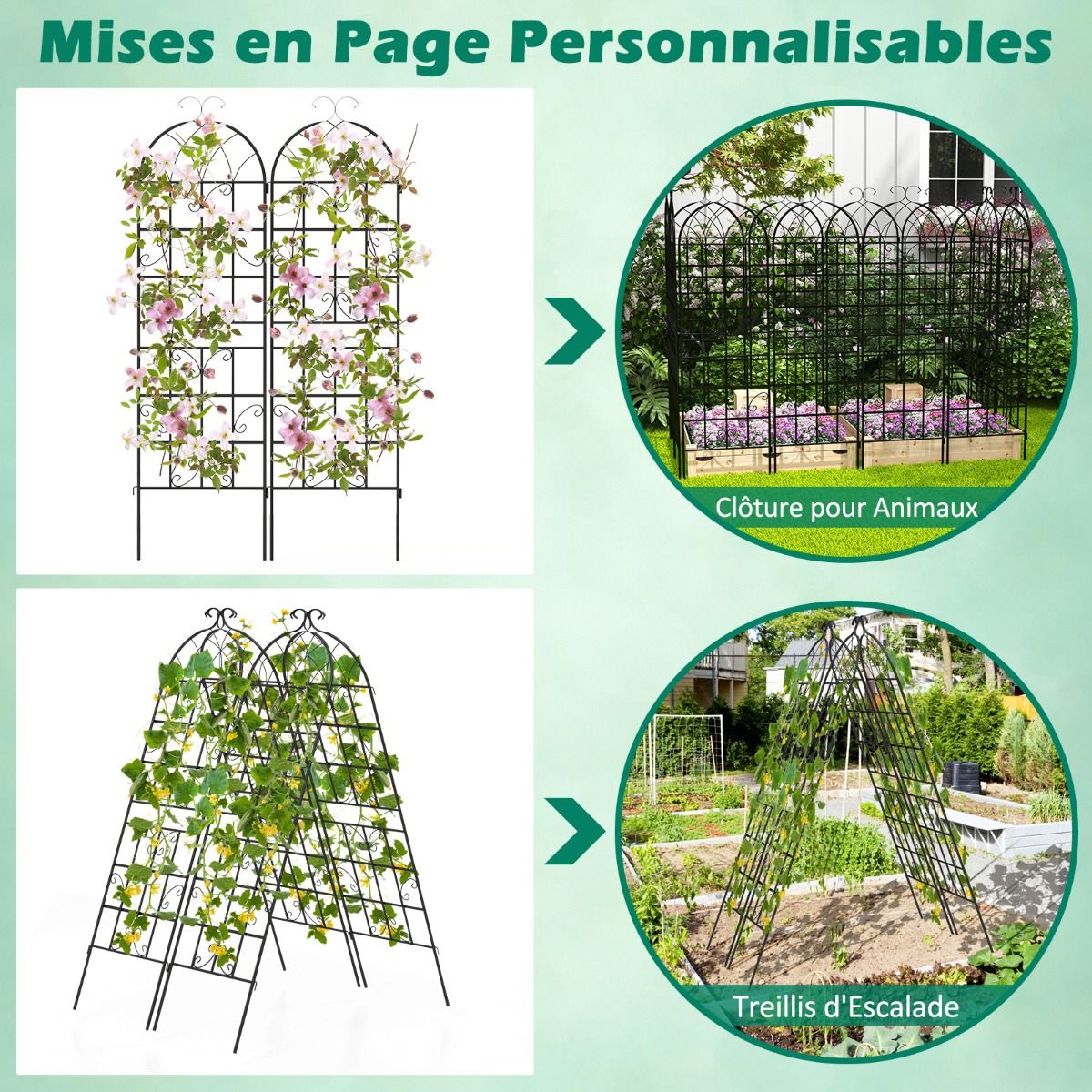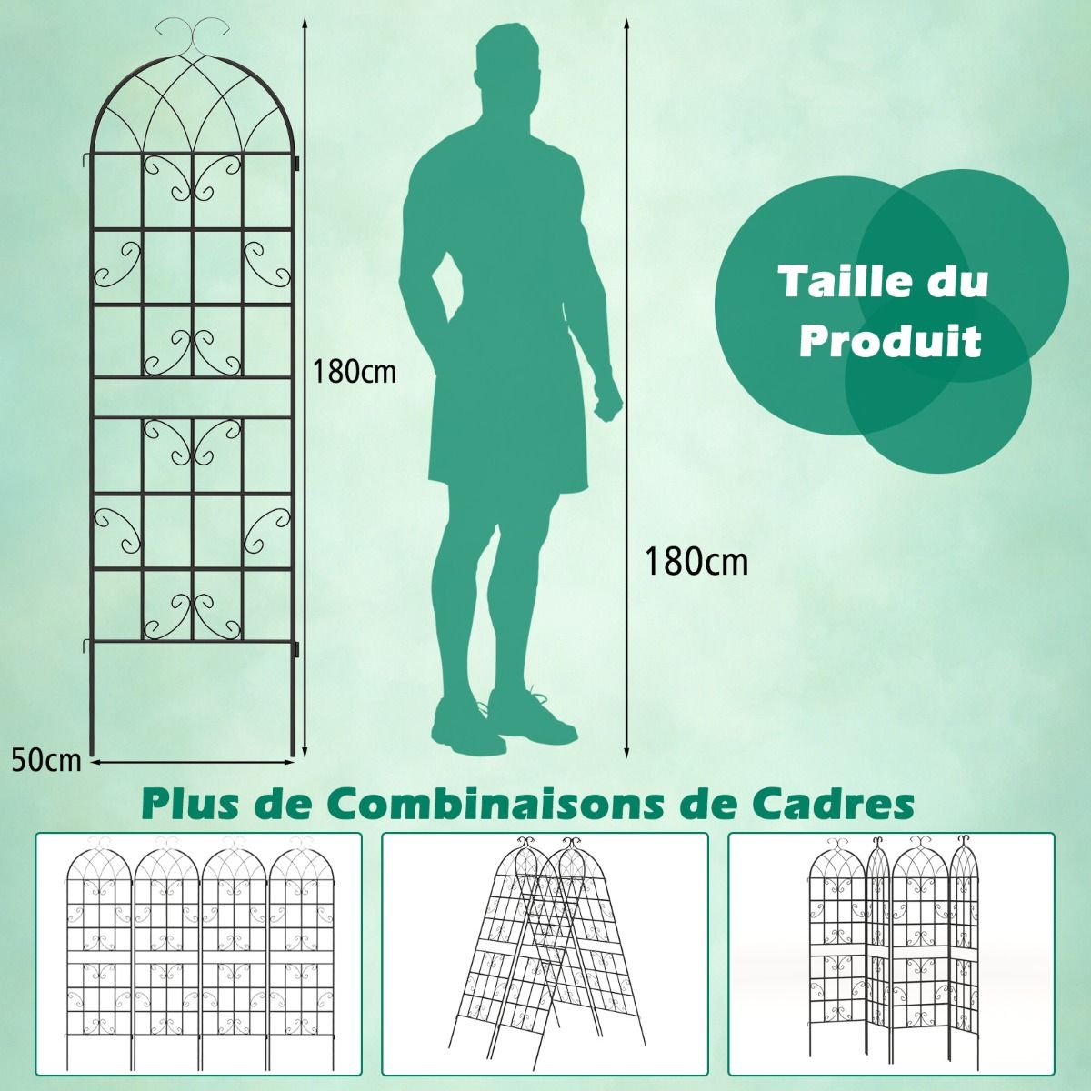 • Set of 4 Metal Garden Trellis 180 x 50 cm Decorative Fence for Climbing Plants Rustproof Flower Grid for Garden Courtyard Patio Black -