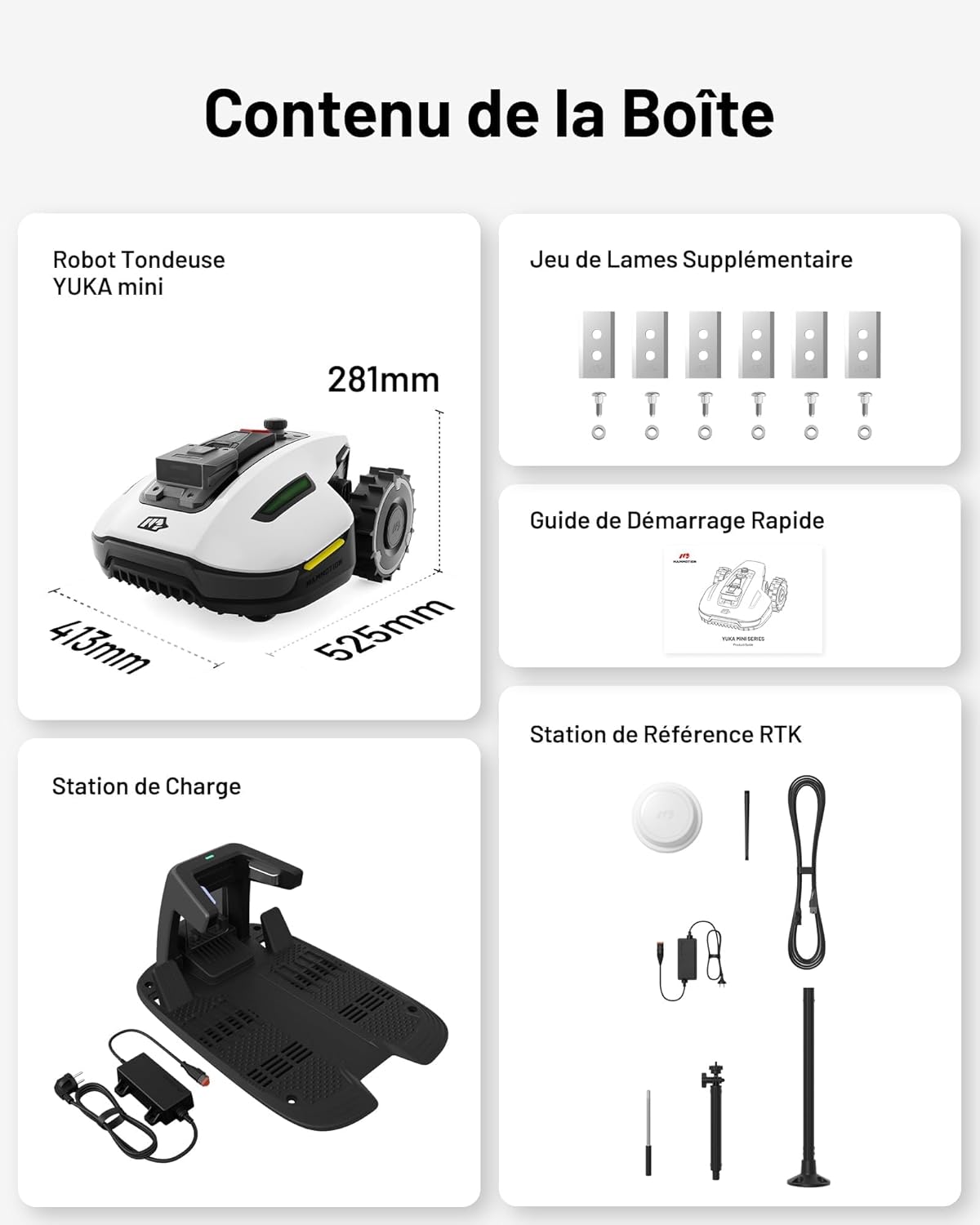 • MAMMOTION YUKA Mini 500 Cordless Robotic Lawnmower, NetRTK+Vision, No RTK Antenna Required, Recommended for 500 m2, 50% Slope, Automatic Mapping, with 4G Module