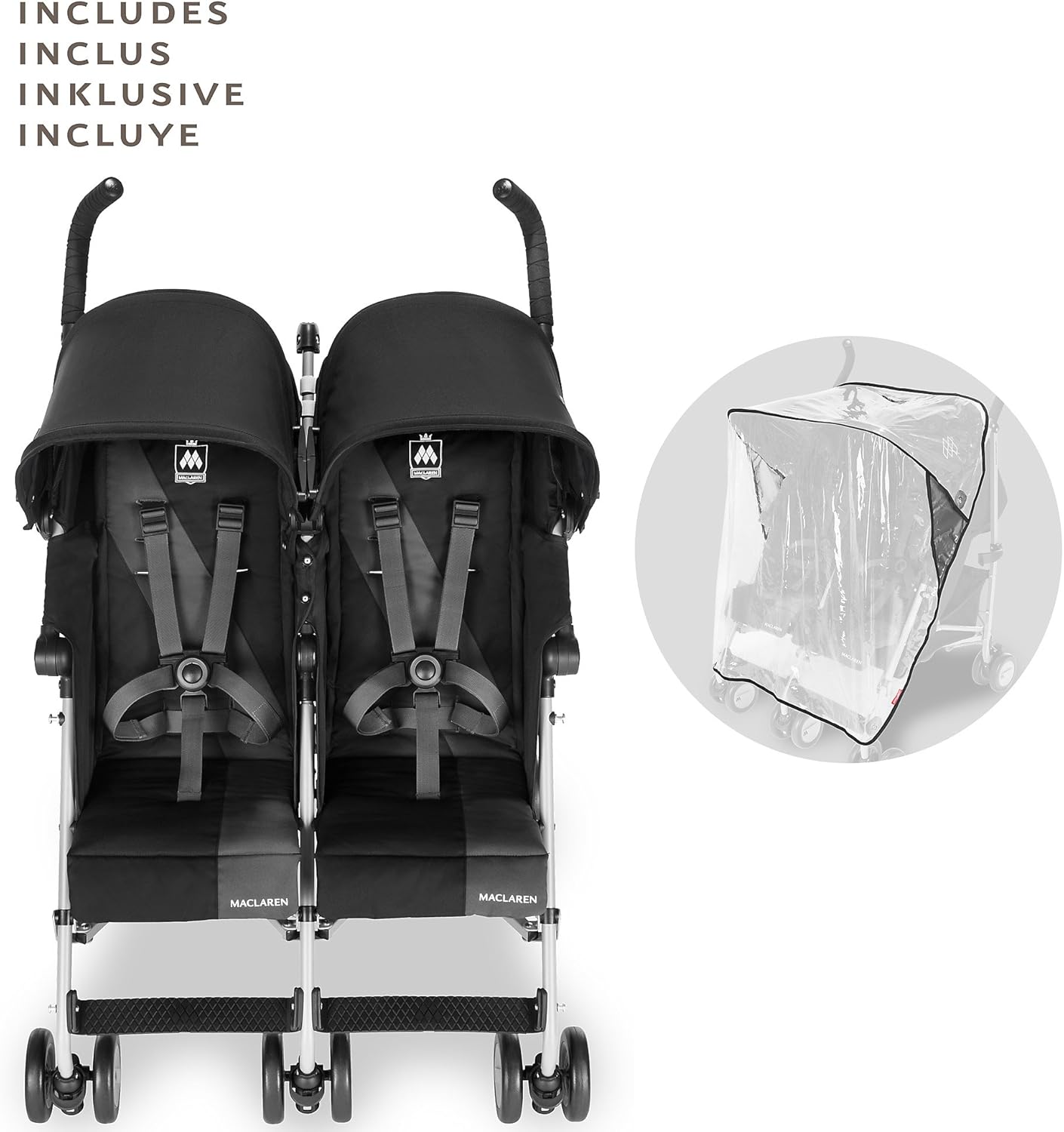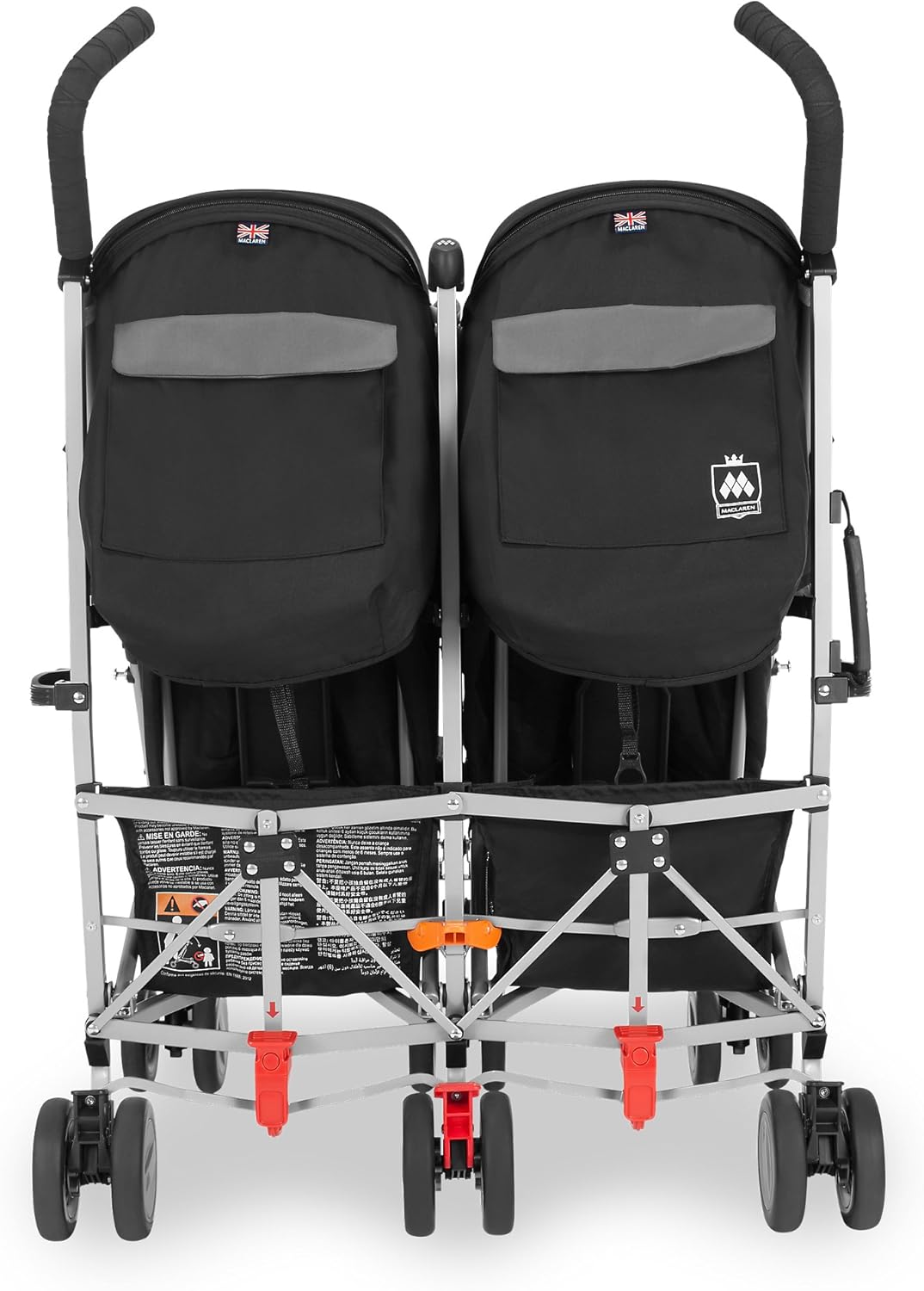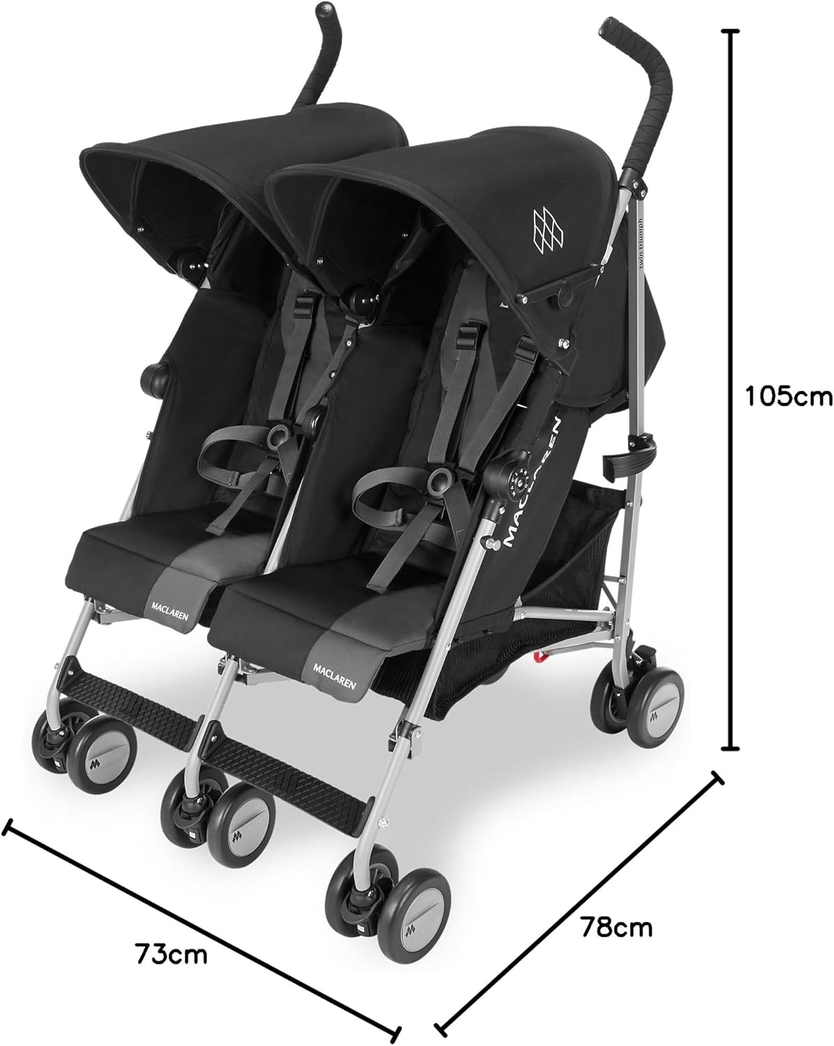 • Maclaren Twin Triumph double stroller (6 months, up to 15 kg, one child per seat), lightweight and compact, extendable UPF 50+ canopy with rain cover - Black/Anthracite