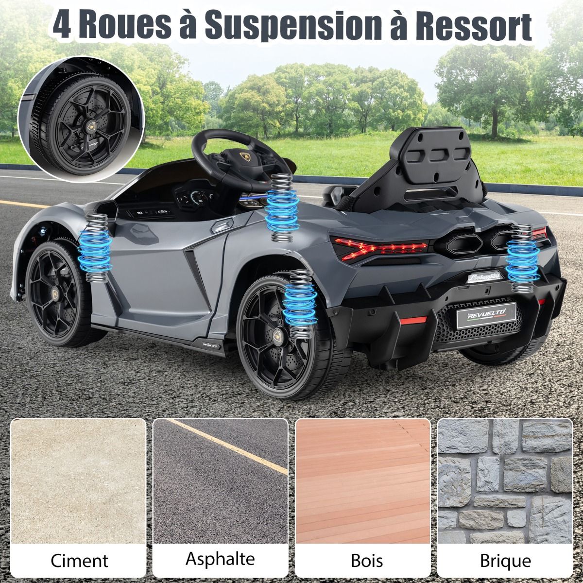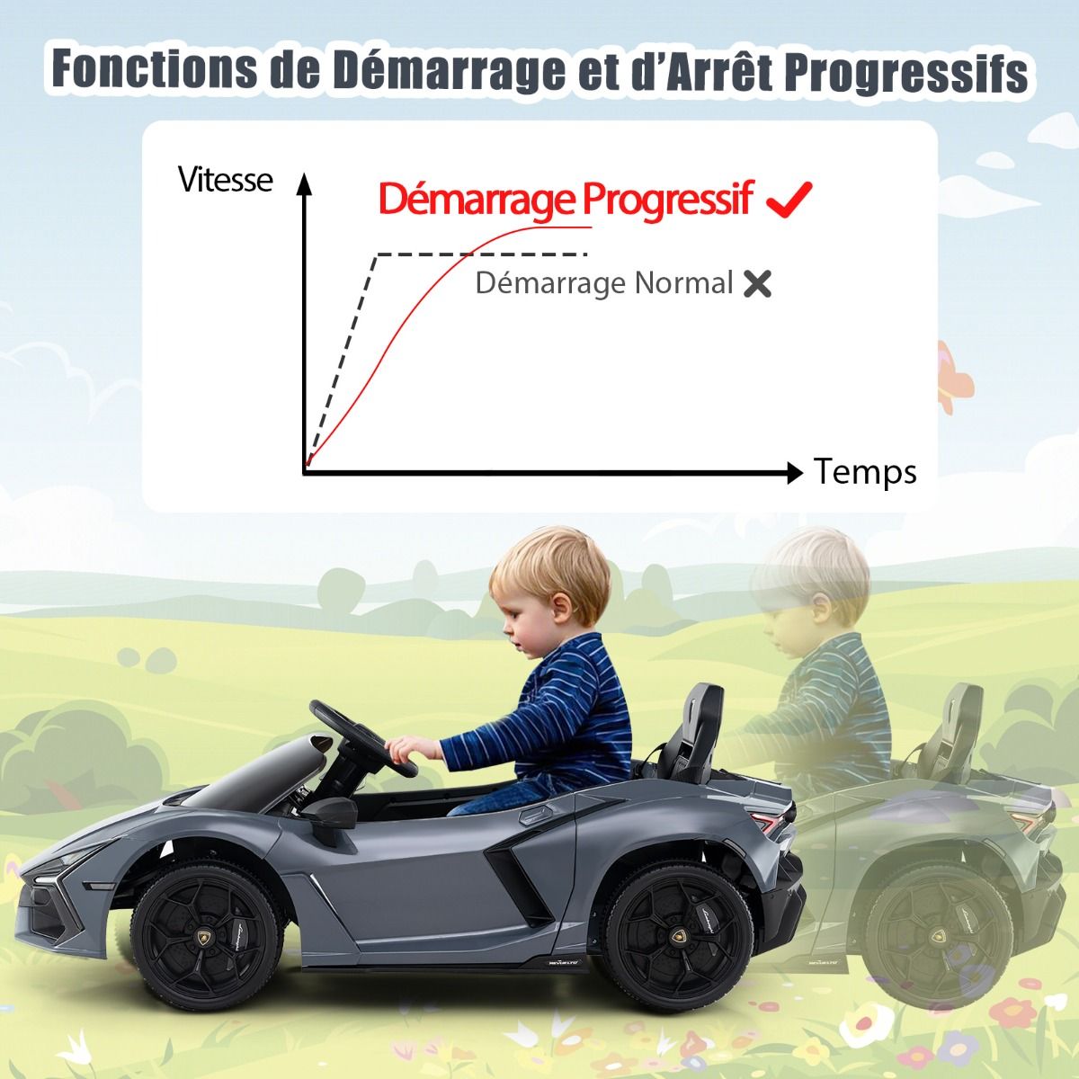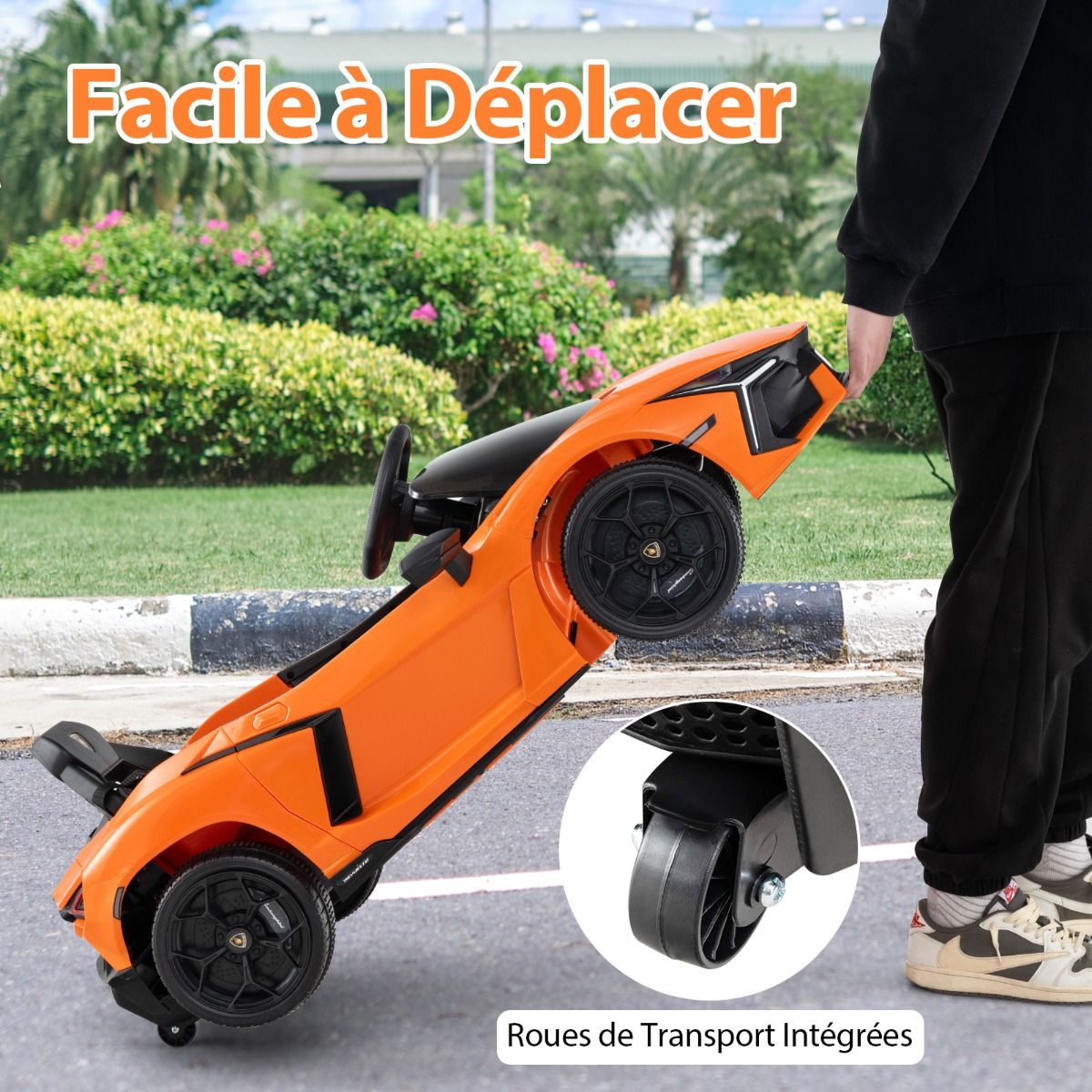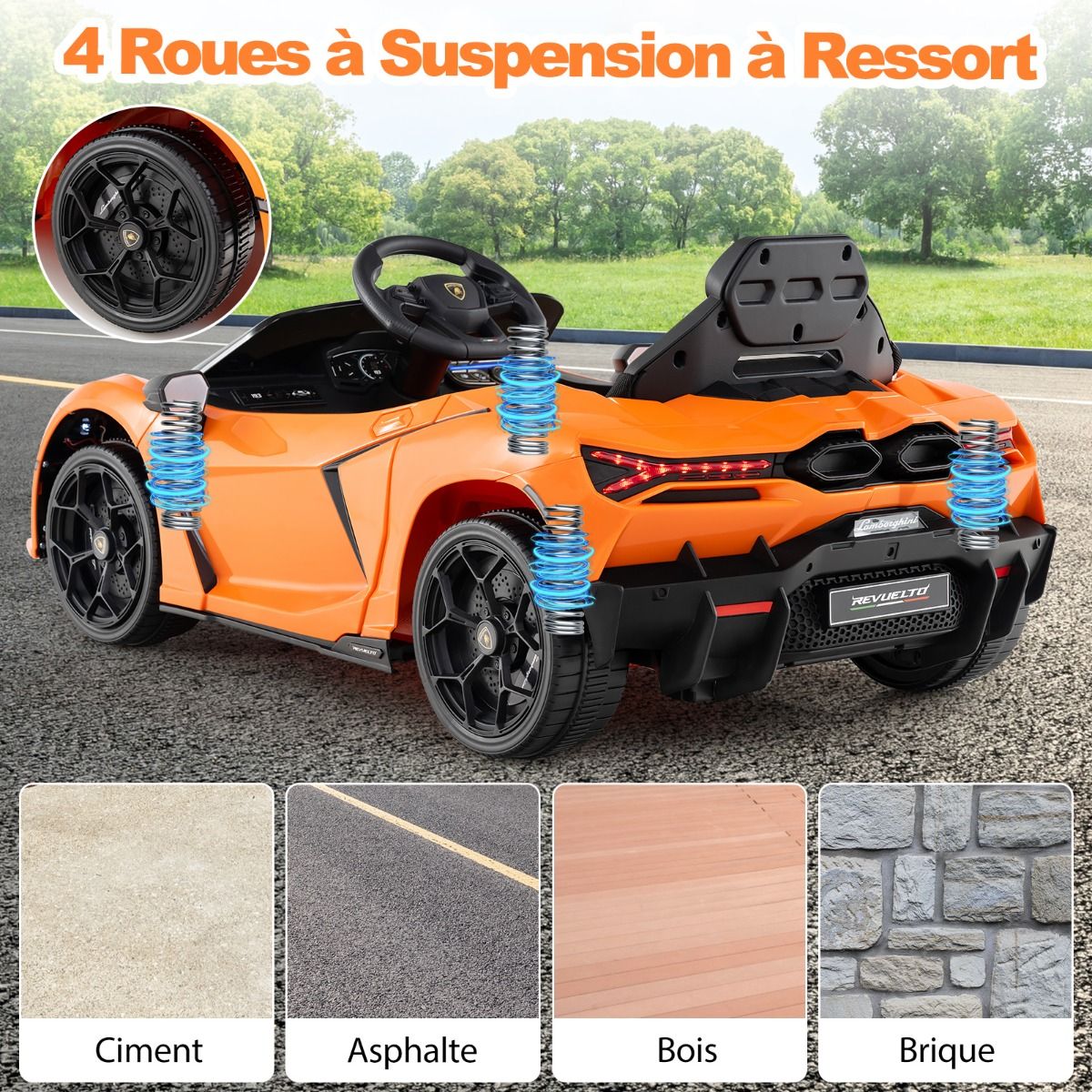 • Revuelto Licensed 12V Electric Ride-On Car for Children with Remote Control and Hydraulic Doors, Suitable for Ages 37-95 Months, Grey/Orange