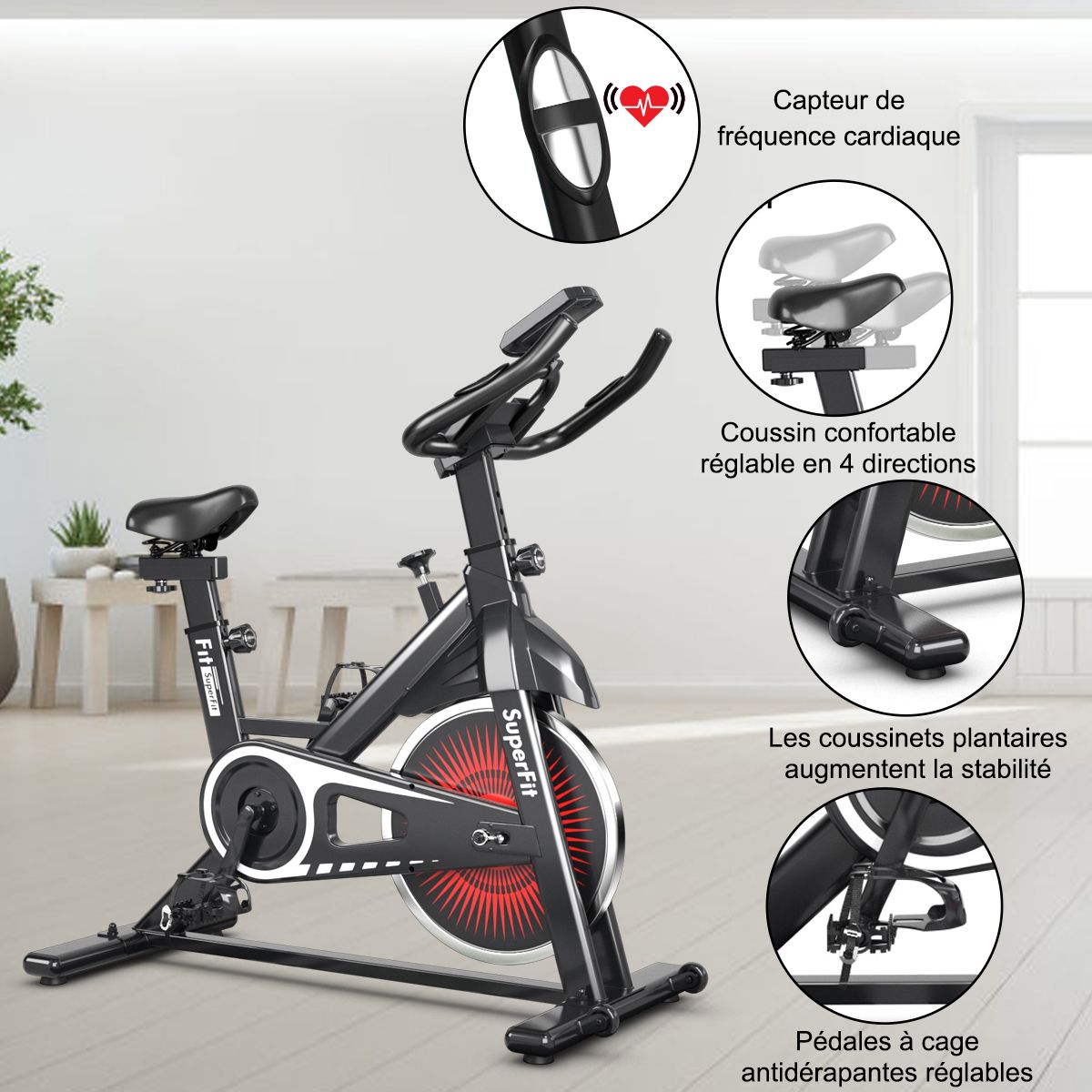 Want a fit and well-proportioned physique? This exercise bike will keep you energized, burn calories, and sculpt a perfect body. This indoor exercise bike features belt-driven stainless steel wheels for a smooth and unobstructed workout experience. It's virtually silent, allowing you to enjoy your workout in a quiet environment. You can adjust the resistance to suit your needs. With the display and heart rate sensor, you can control the intensity of your workout as you wish. The non-slip handlebars are two-way adjustable, and the pedals are four-way adjustable to meet your various needs. Transport wheels make it easy to move the exercise bike. Features: Powerful multi-functional display and phone holder. The digital display shows time, distance, speed, heart rate, and calorie consumption, helping you customize your workout plan. The handlebars on both sides record your heart rate per minute, allowing you to adjust your workout pace. The phone holder lets you listen to music or watch videos simultaneously. [Freely Adjustable Resistance] The resistance is easily adjustable, allowing you to choose the appropriate exercise difficulty according to your needs. You can also quickly stop all resistance with a button. This exercise bike has 4 difficulty levels to meet your different needs. Easy to assemble, saving time and effort. [Refined Design] The non-slip handlebars are two-way adjustable, and the comfortable seat is four-position adjustable to adapt to your riding posture, ensuring a comfortable pedaling experience. The pedal clips are non-slip and two-way adjustable. Two wheels make it easy to move this exercise bike. [Strong and Durable, Stable Structure] The double-triangle frame makes this exercise bike easy to install and gives it a simple, modern style, perfect for office or home use. Made of high-quality materials, it has a strong load-bearing capacity, and the steel frame is not easily broken. Four foot pads on the bottom prevent scratching the floor. [High-Quality Silent Flywheel] Riding this exercise bike helps improve blood circulation, burn calories, and work your arm, waist, hip, and leg muscles. This belt-driven exercise bike features a steel flywheel, allowing you to exercise quietly without disturbing others. Powerful Features: The display shows time, distance, speed, heart rate, mileage, and calorie consumption; a heart rate sensor on the handlebars adjusts exercise intensity according to your fitness level; a phone holder allows you to watch videos or listen to music during your workout; adjustable resistance to suit different intensities; one-button resistance stop; four-level adjustable handlebars to suit different riding styles; easy assembly; adjustable seat and handlebars to fit users of all heights; two transport wheels for easy movement; hardened steel and triangular frame to withstand high-intensity workouts; four foot pads to prevent leaving marks on the ground; a stainless steel flywheel for a smooth riding experience; quiet design to avoid disturbing neighbors. Specifications: Color: White + Red; Material: Stainless Steel, ABS; Dimensions: 104cm x 52cm x 101cm-113.5cm (L x W x H); Seat Dimensions: 24cm x 20.5cm (L x H x W x H). Seat adjustment: 77cm-90cm; Handlebar adjustment: 95cm-107cm; Net weight: 23.6kg; Gross weight: 27.2kg; Load capacity: 120kg; Delivery includes: 1 exercise bike; 1 instruction manual.